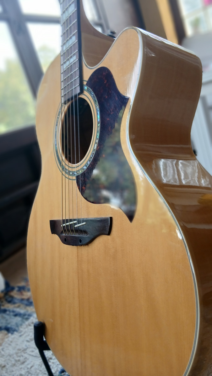 Ea. Se vende esta preciosa guitarra, de la que encontraréis muchisima información en la red. Lo básico: cuerpo Jumbo con cutaway, fabricada en Corea con el fantástico sistema de amplificación TK-40 que ofrece un fantástico sonido amplificado.