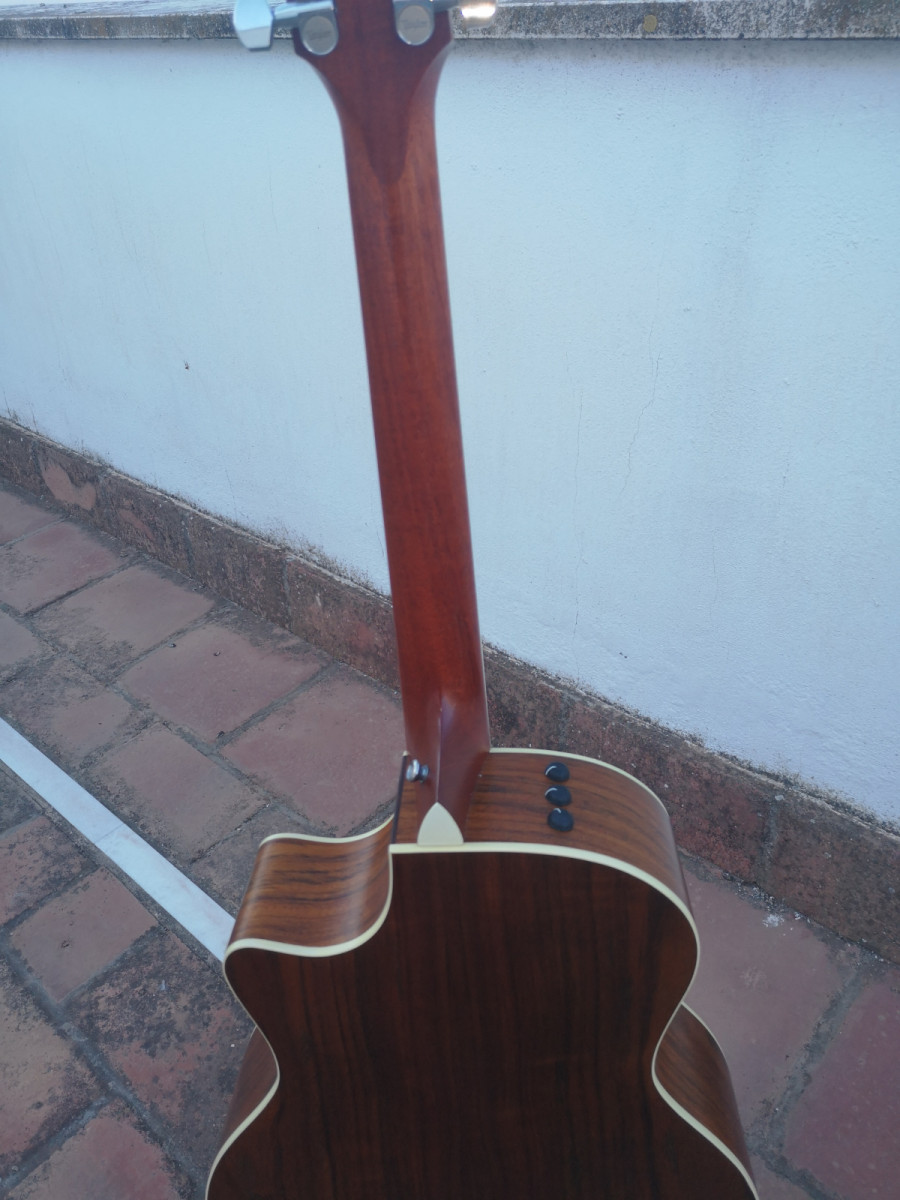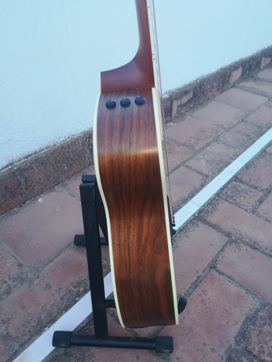 Vendo esta fantástica guitarra en perfectas condiciones, solo tiene dos puntitos en la tapa, se ven en las fotos, superficiales y un poco craquelado el barniz en la pala, da unos graves increíbles suena del 10, en fin