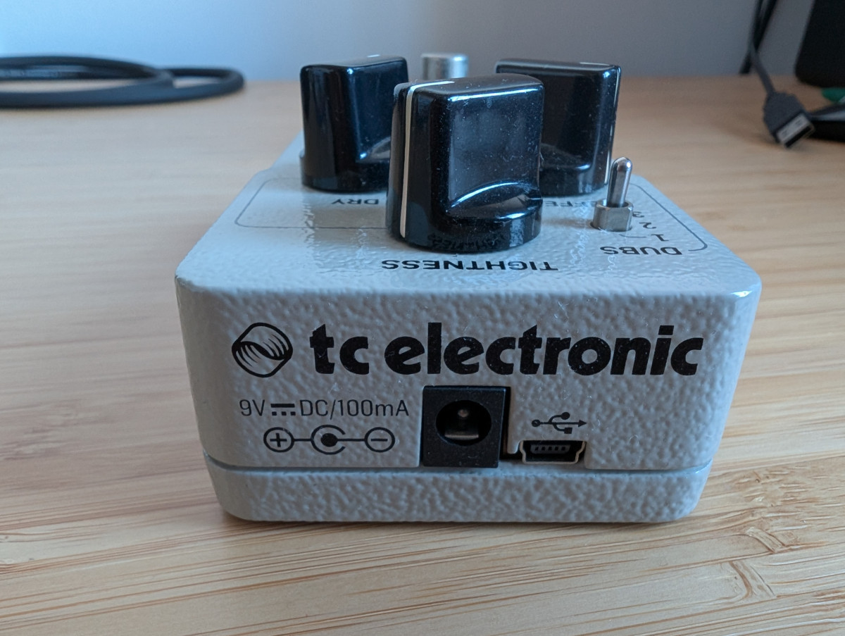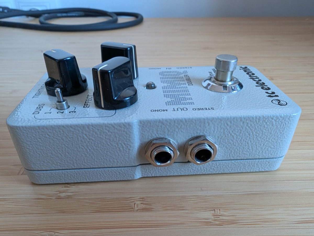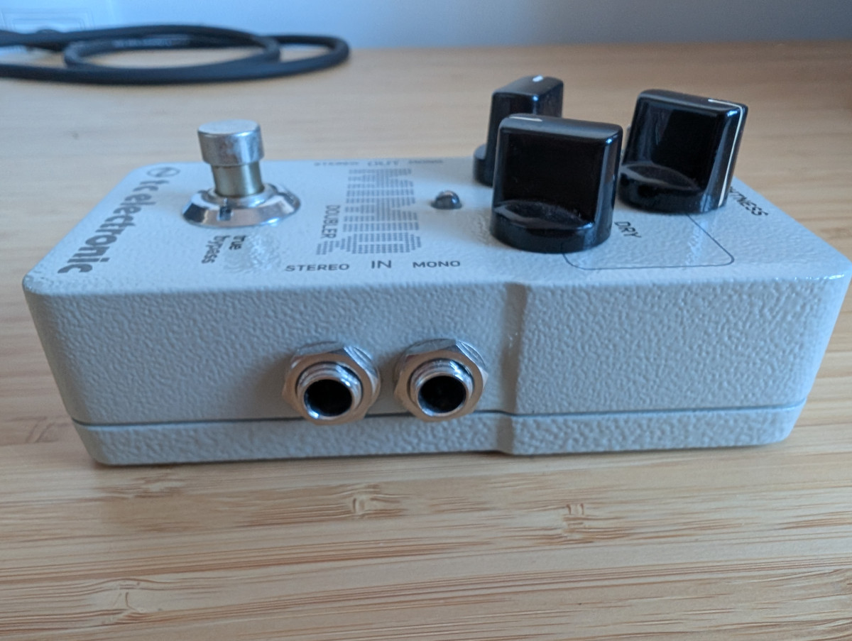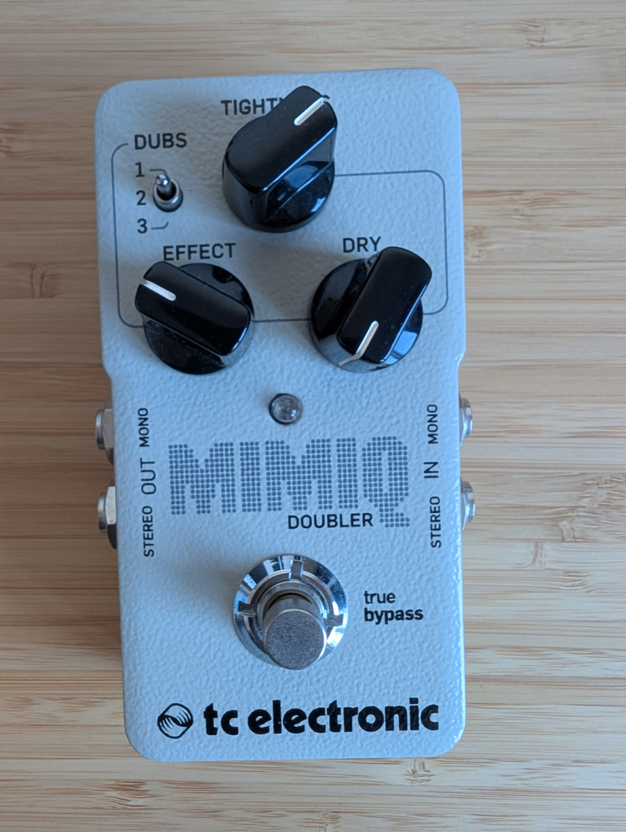 Pedal en perfecto estado con su caja original. Lo he utilizado para tocar en estéreo y cumple perfectamente su función de hacer que las guitarras suenen grandes. Puedes controlar el delay (tightness), el efecto (effect) y el sonido sin efecto (dry).