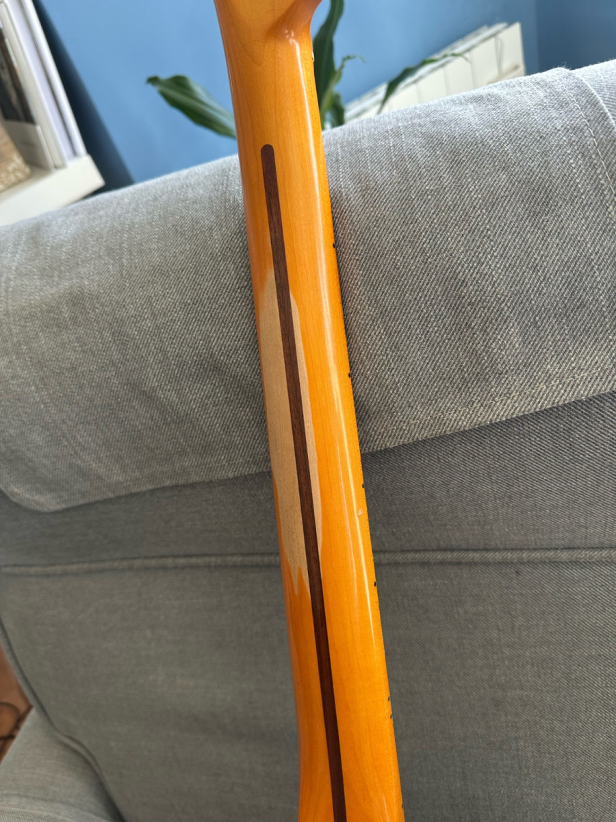 El mástil es original fender classic Telecaster 50’s acabado en nitro con un relic suave.
