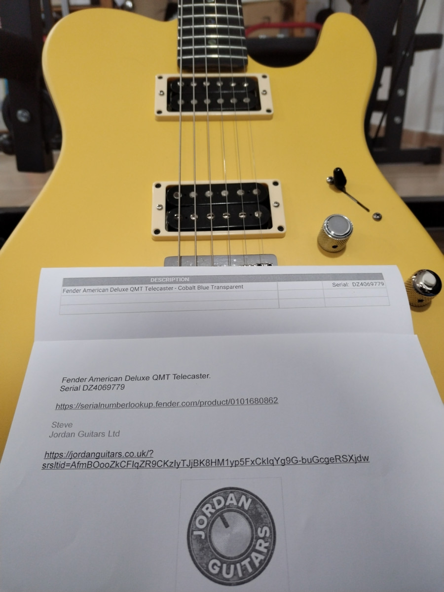 No deseo cambios. Necesito bajar el stock de cosas que no toco. Diapasón de ébano, inlays abalone...en fin pongo foto del serial y es más fácil veas sus características. Se le hizo un cambio de trastes, los trastes están nuevos, al 100%. Lleva Fender enforcer pickups que son las originales. Para mí esta guitarra es un cañón con otras pastillas. Las enforcer son imán cerámico , yo la he tenido con humbuckers tipo paf imán alnico y el sonido y el tono es de 10. Tengo dos telecaster más y esta debe irse. Es muy ligera y muy muy cómoda. Un vídeo de ella