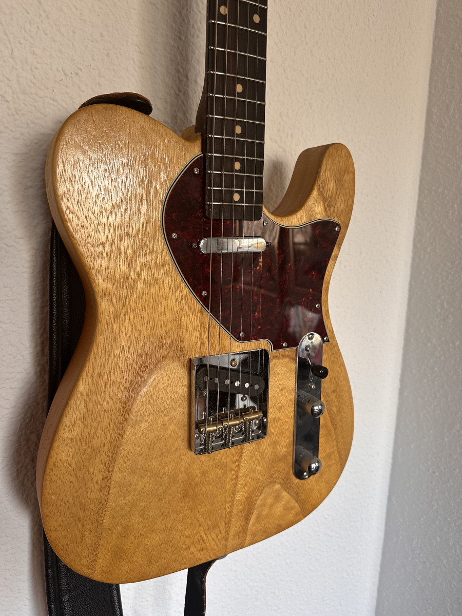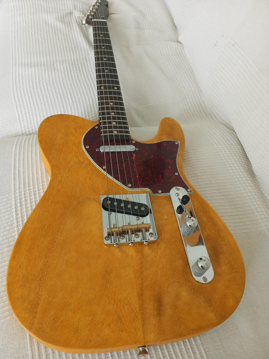 Vendo Telecaster de Mojo Guitars, cuerpo y mástil de Bezier, palo rosa y arce en mástil y cuerpo de Paulownia el conjunto pesa solo 2,5kg con gran resonancia, electrónica Fender standard en mástil y fujigen en puente, con potes goldo y Orange drop