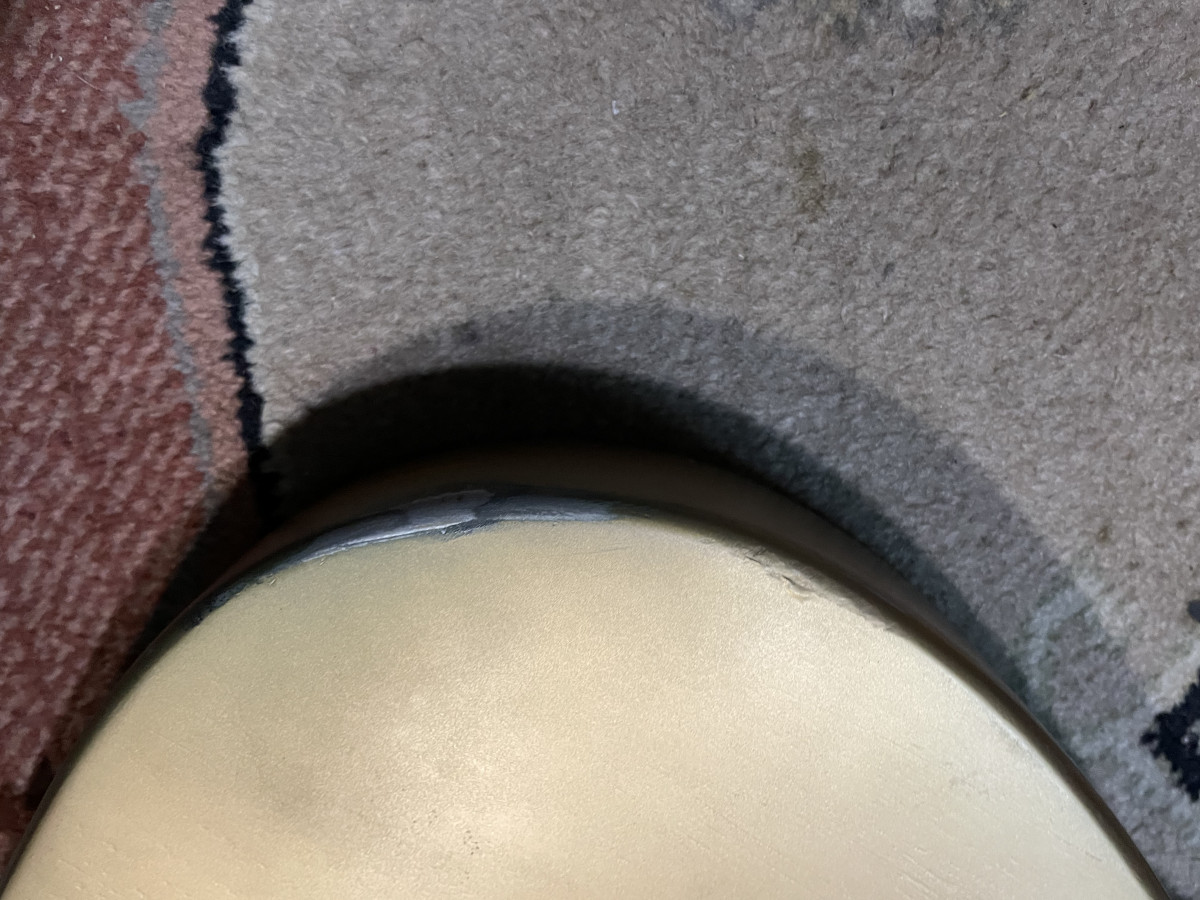 Cuerpo color dorado y en las esquinas plateado. No sé la madera pero pesa.
