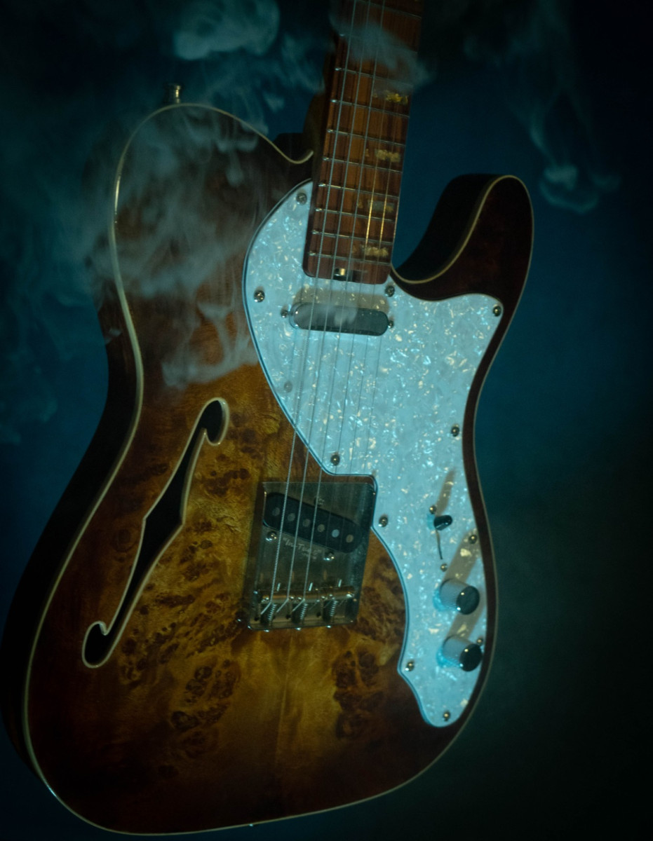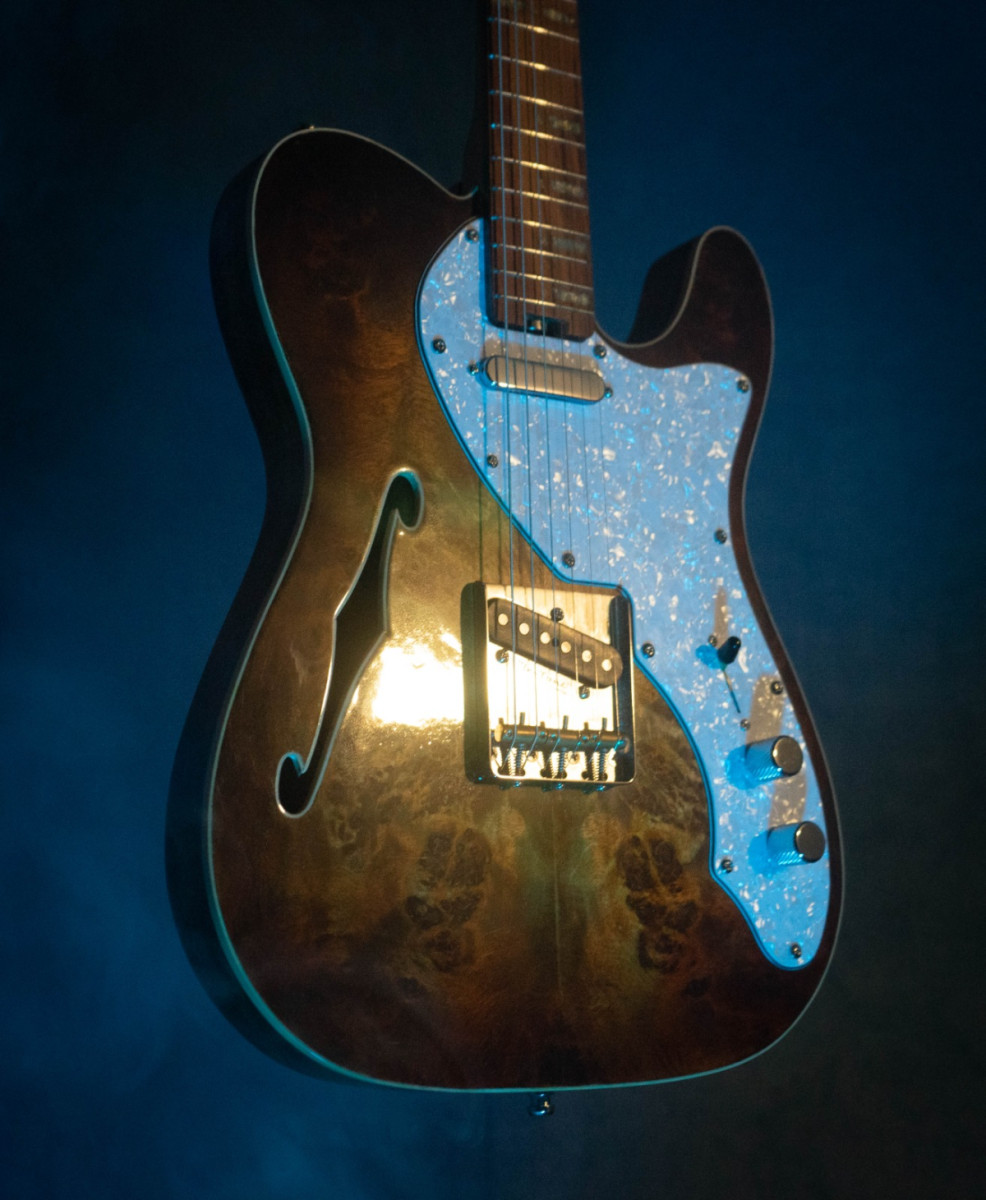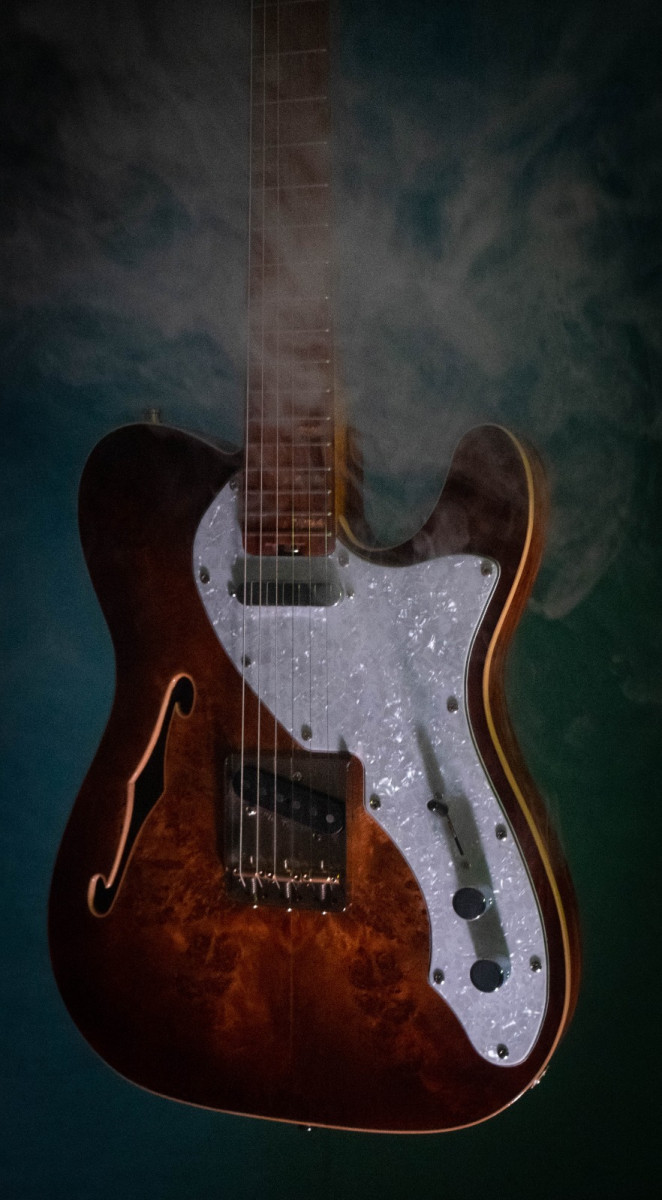 Magnífica telecaster thinline hecha a mano con maderas de primera.