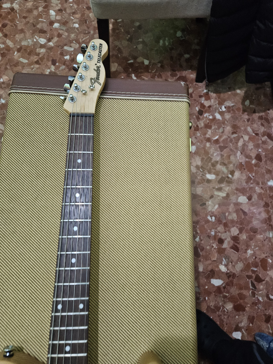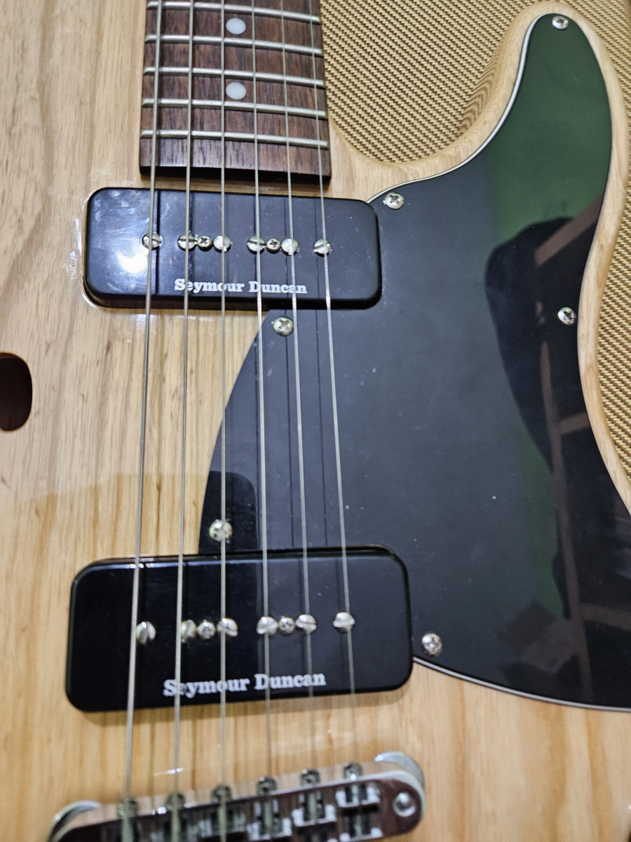 Telecaster con p90 , cuerpo madera de fresno ligero , pastillas p90 seymour Duncan ,mástil encolado , muy buen estado , regalo maleta de thomman de la foto , made in indonesia , precio de thomman el que veis en la foto.
