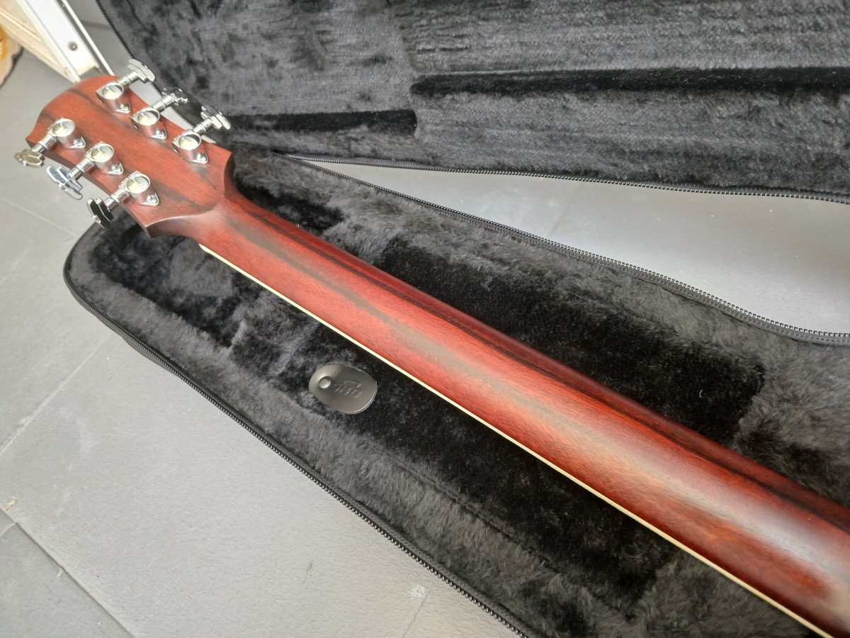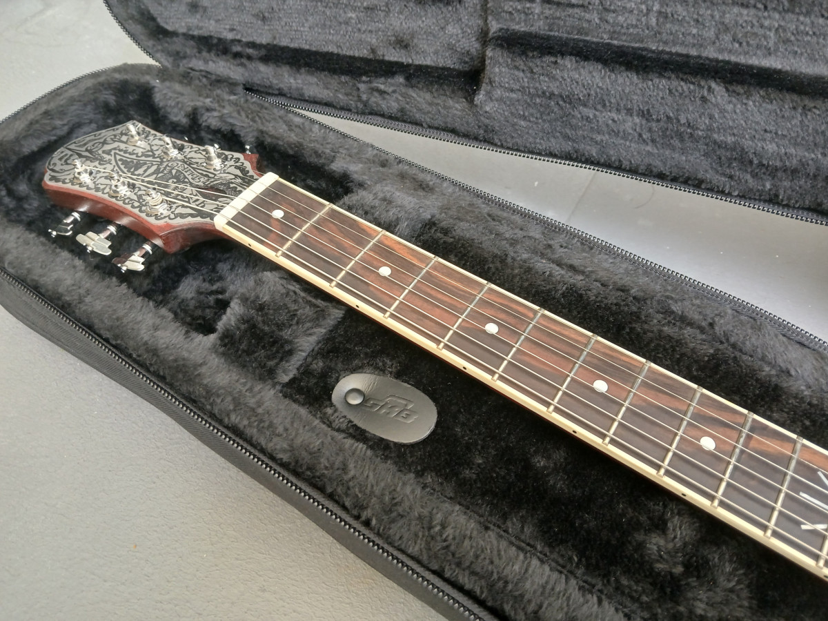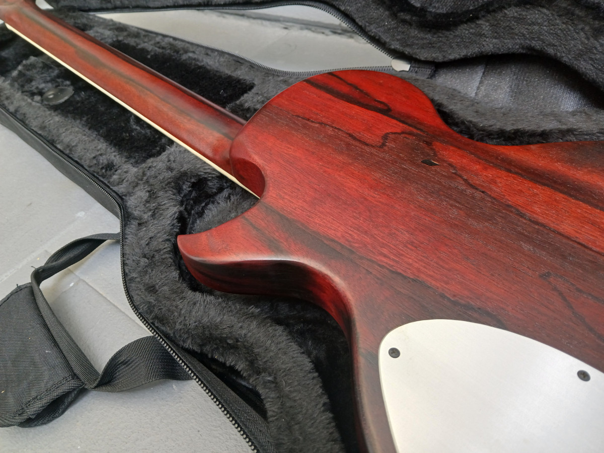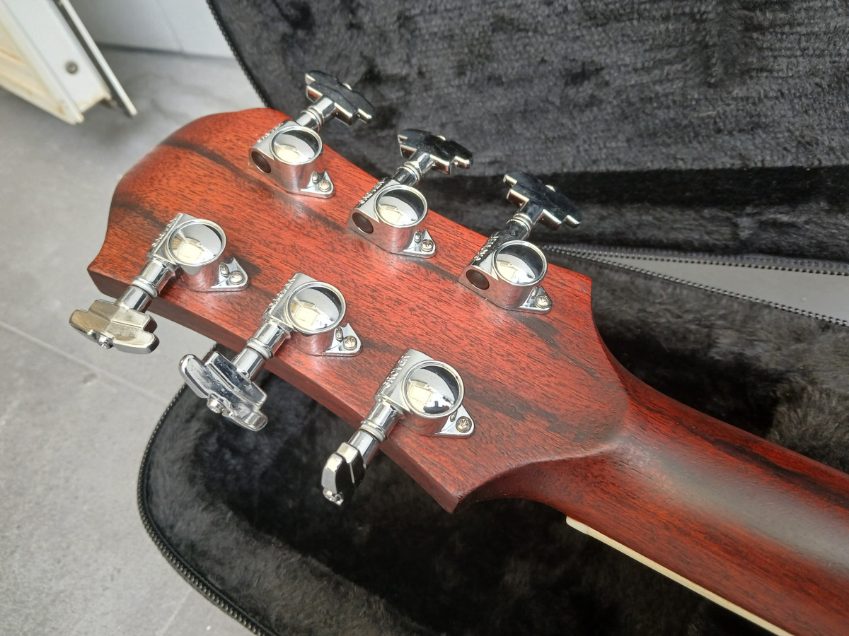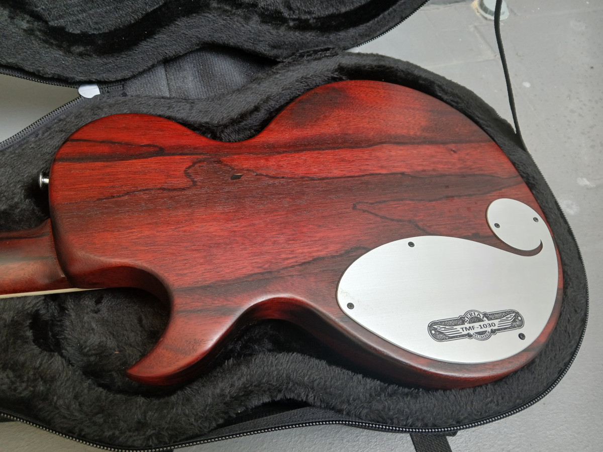 Instrumento fabricado a mano. Materiales y diseño únicos. Circuito Mojo ultraversatil, sonido precioso, pastillas dimarzio custom, caoba veteada bellísima, ébano, Duraluminio, grovers imperial.