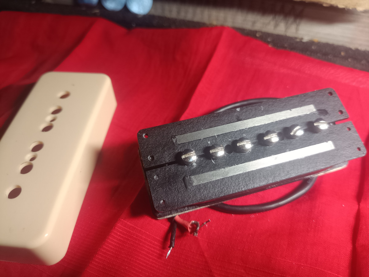 Humbucker en formato p90 para mastil, crema, tornillos y caja incluidos.