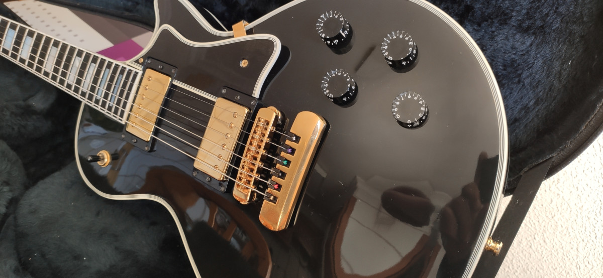 Esta perfecta para tocar. es comparable a cualquier Les paul custom shop, con una pala mas fea (para algunos), pero que mantiene la afinacion mejor que otras palas mas ´´bonitas´´.