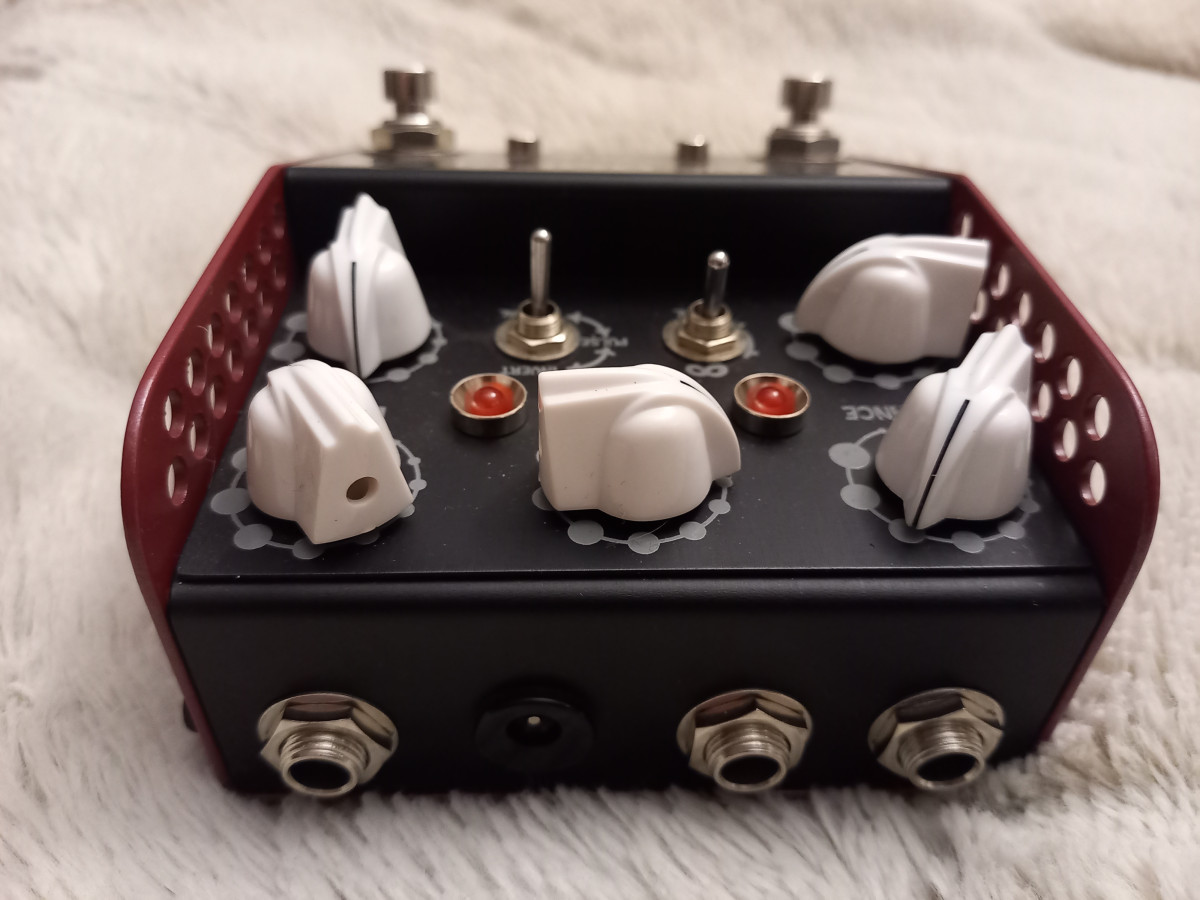 El pedal es un Phaser/Tremolo principalmente pero también entrega sonidos de Vibrato/Uni-Vibe, de hecho así le he tenido configurado la mayor parte del tiempo. Nunca he usado un pedal de modulación tan perfectamente integrado en la señal sin que haga ruidos, aumente o disminuya de señal o coloreé el tono.