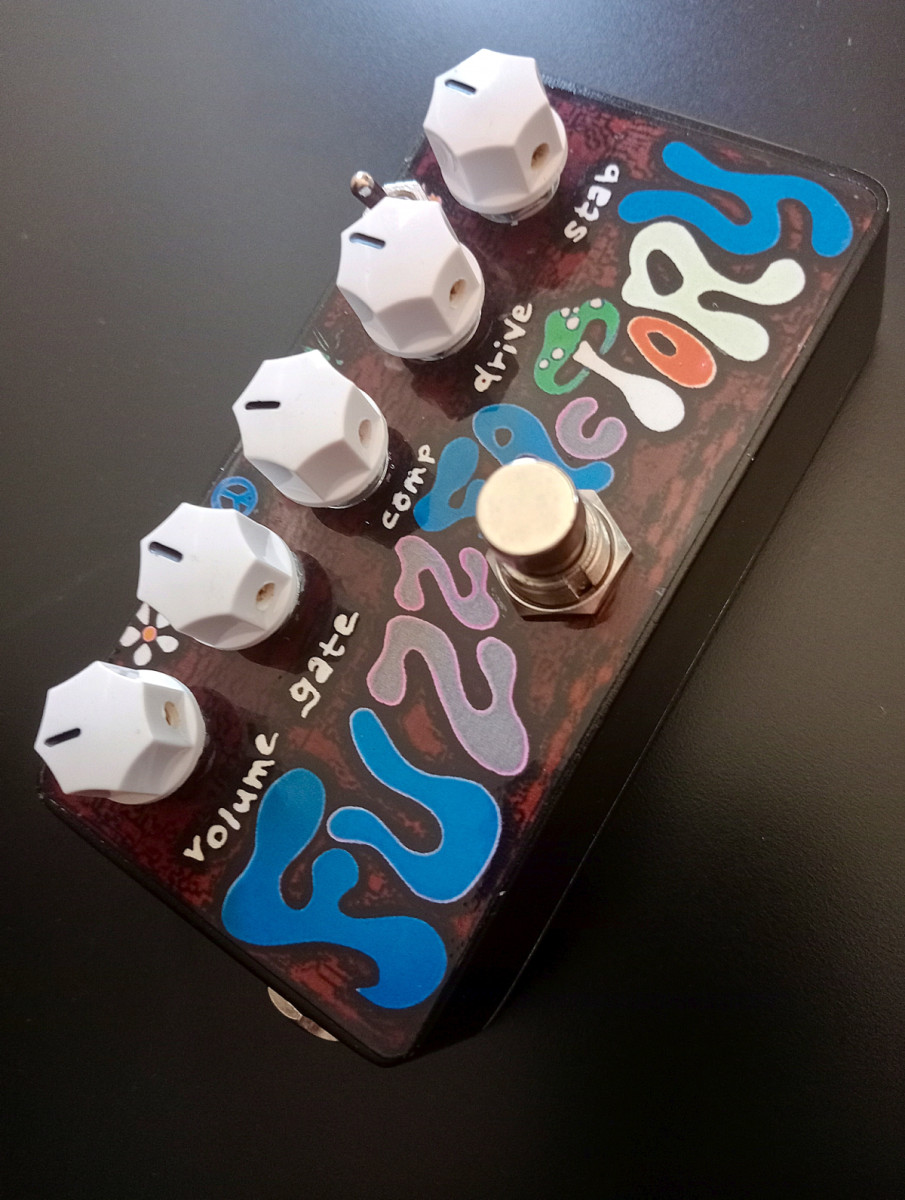 Pedal Guitarra y Bajo. FUZZ Distorsión tipo Fuzz Factory. Versión ( FAT) Switch para ecualizar frecuencias con tonos más medios y grave. Transistores de Germanio Rusos vintage seleccionados y polarizados.