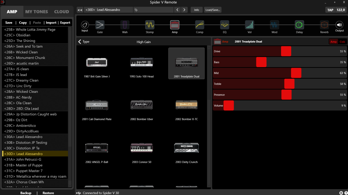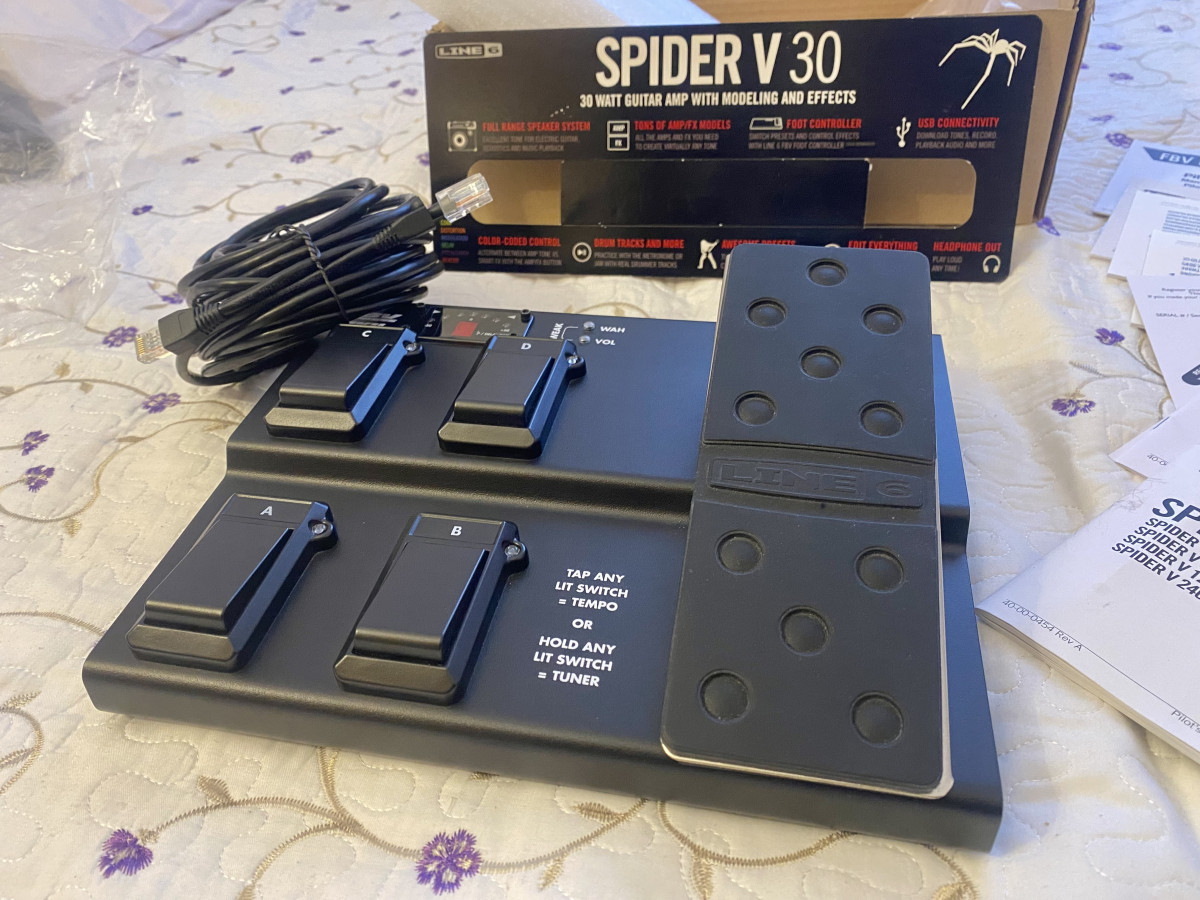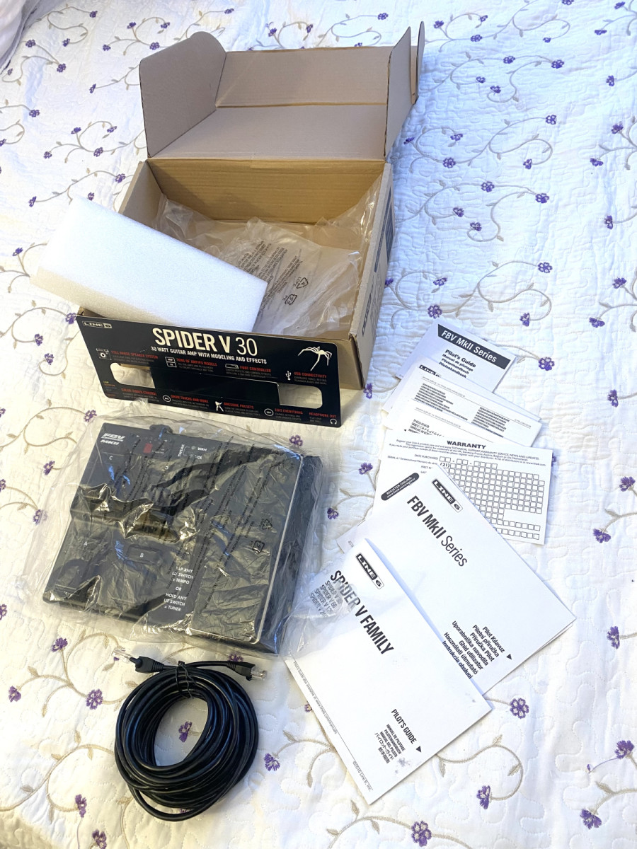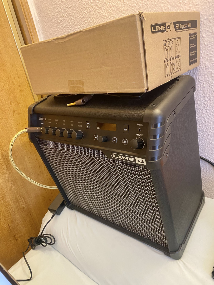 En estado 9/10 tanto el amplificador como el pedal! Me desprendo de este maravilloso setup que tantas horas de diversión y audio de calidad me han aportado con el fin de ahorrar y subir de nivel (en caso de querer escuchar ejemplos podéis buscar mi cuenta en Instagram: Alessandro_musician) el pedal incluye cable larguísimo que además de transmitir la señal, funciona como fuente de alimentación por lo cual va directamente con la energía del ampli. El ampli incluye cable para conectar al ordenador para grabar vía USb y configurar los 128 bancos disponibles mediante la app oficial de Line 6 Spider remote disponible para Android, IOS, Windows, Linux y Mac. Más información de ambos productos disponibles en la página oficial de Line 6.