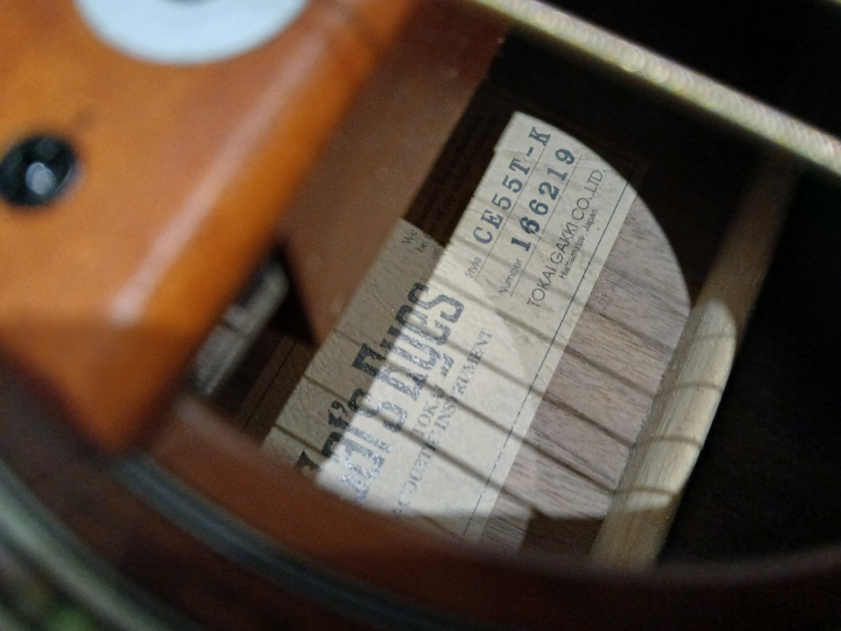 Vendo esta brutal Guitarra electro acústica Tokai Cat's Eyes CE55T-K con cuerpo tipo OM fabricada en Japón en 2016.