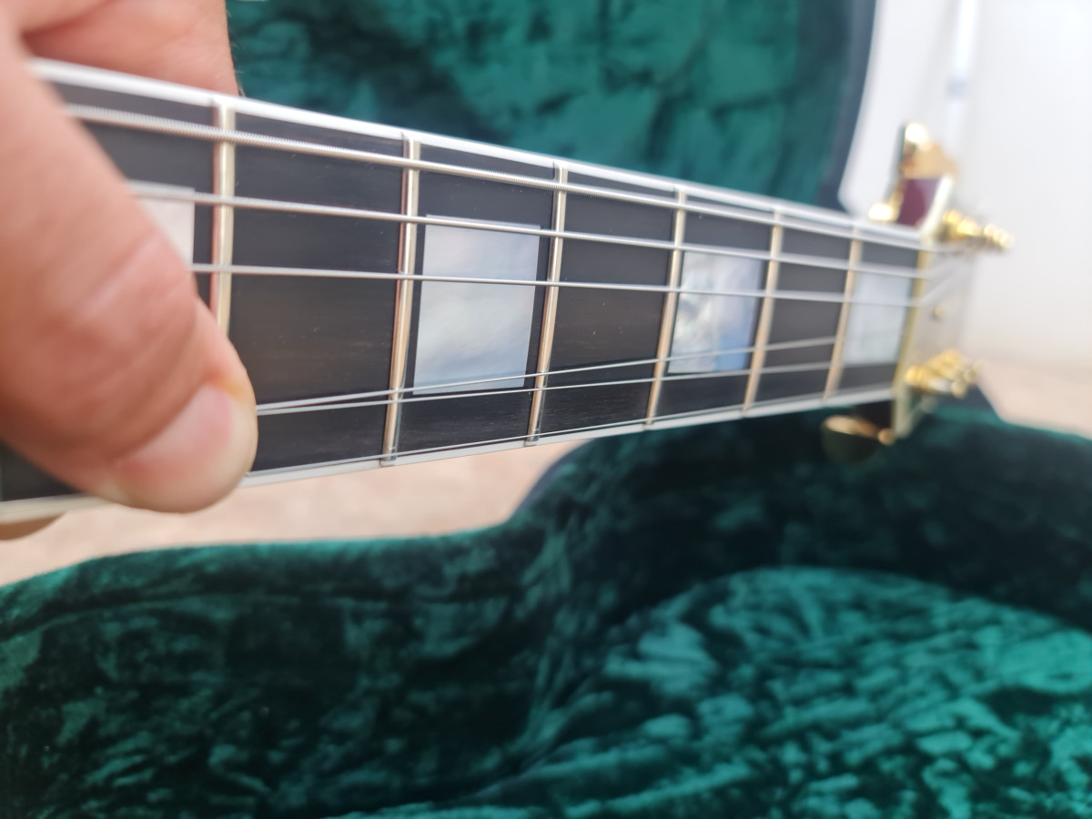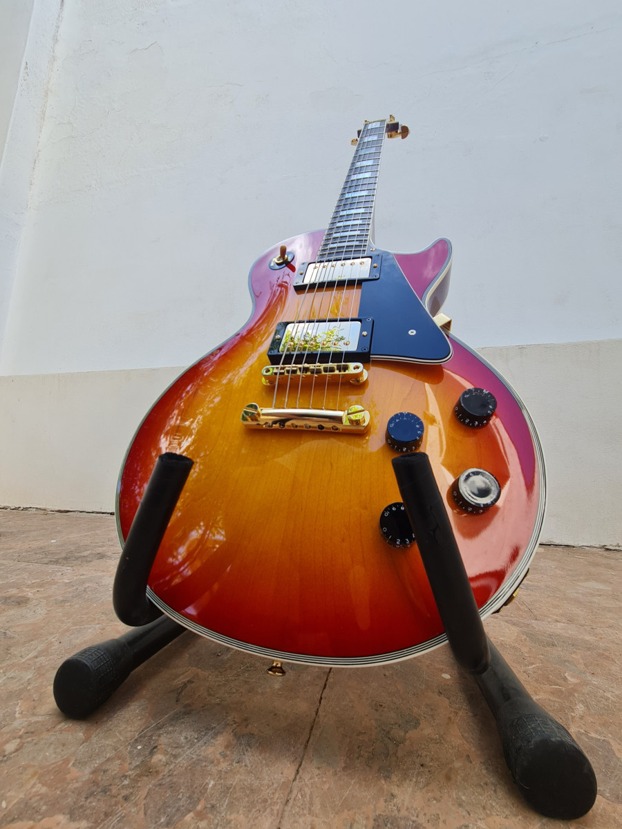 Guitarra prácticamente nueva, aun conserva los protectores en algunos de los plásticos. Es un guitarrón, con un sonido que nada tiene que envidiar al modelo al que imita (y no hablo de oídas, tengo ambos modelos) y unos acabados que en algunos aspectos son superiores. La guitarra está en Almendralejo, y si estás verdaderamente interesado puedes venir y comprobarlo en persona (también se podría probar en Mérida).