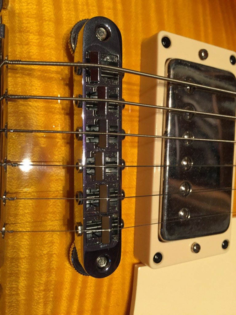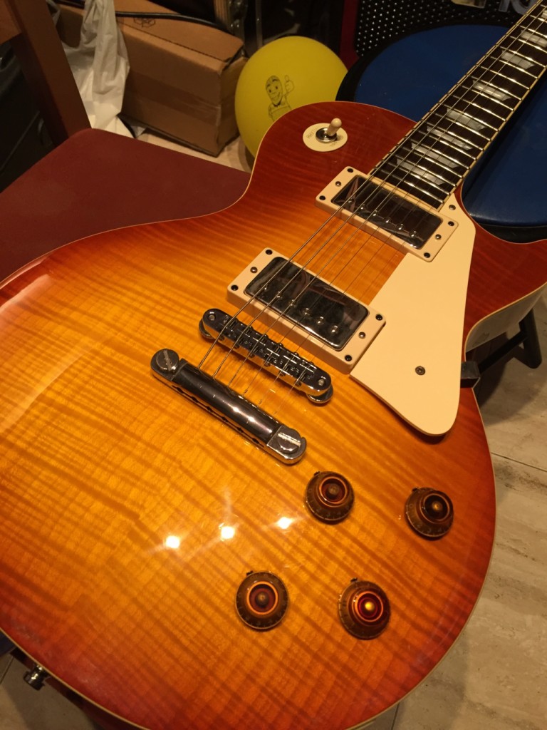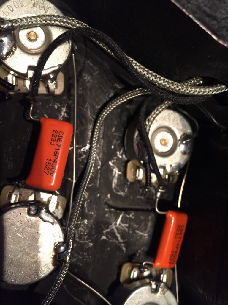 Las pastilla del mástil está desfasada y lleva la modificación de PETER GREEN cuando pones la posición central para conseguir un sonido "nasal" como la guitarra que Gary Moore adquirió a Peter Green.