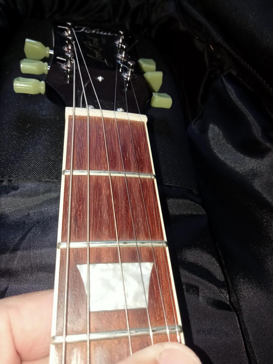 La guitarra está en perfecto estado. Recien ajustada y quintada con cuerdas 10-46. Lleva instalado un set de Seymour Duncan "Slash" que cuesta ya cómo media guitarra. Suena espectacular. El switch de cambio de pastilla, es original "Gibson". La Guitarra viene con correa Gibson y con cierres de seguridad, además de funda acolchada. No tiene golpes, ni dings, ni dangs, ni nada por el estilo. Únicamente cambio por Strato clásica (no floyd rose ni nada por el estilo) o puede que alguna telecaster. Gracias