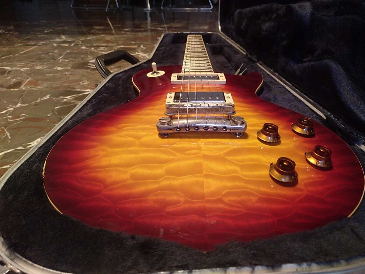 Vendo una 136q debe ser cherry burst (o similar) antigua (no sé cuantos años tendrá, 10 seguro, en los comentarios me dicen que, por el número de serie, es del 2010) con SD59, clavijeros Groover (de los buenos) instalados impecablemente por David Rossi. Viene a ser una 58, con mástil gordo, pero japonesa.