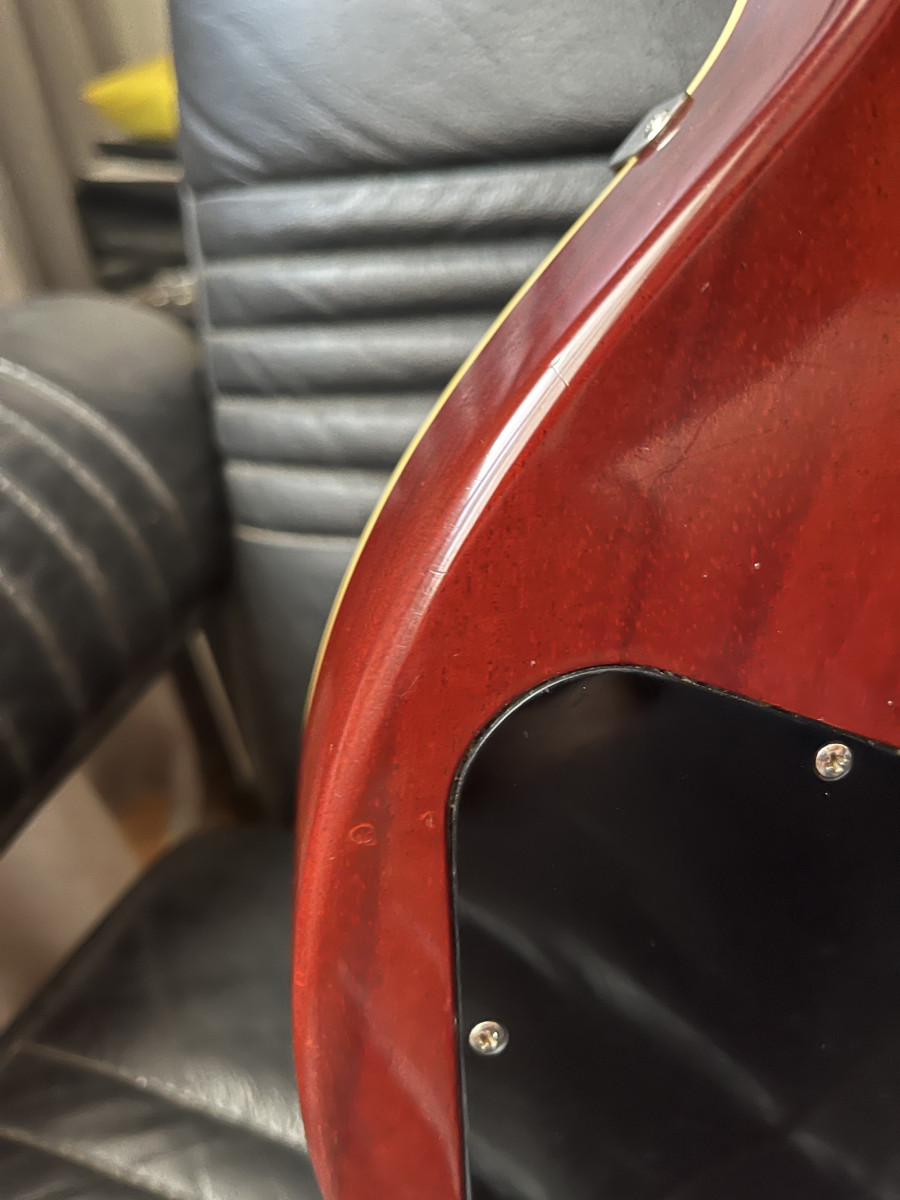 La guitarra tiene varios dings y marcas propias del uso, pero está en perfecto estado y se toca de maravilla. Trastes algo gastados pero con mucha vida por delante.