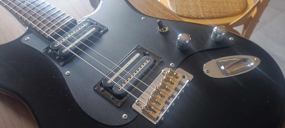 Vendo esta rareza casi imposible de encontrar por aquí. Pienso que es una Tokai M-452 de la serie MAT (ver el link para más información: https://www.tokaiforum.com/threads/1985-mat-most-advanced-technology-electric-guitar-catalog.30469/)