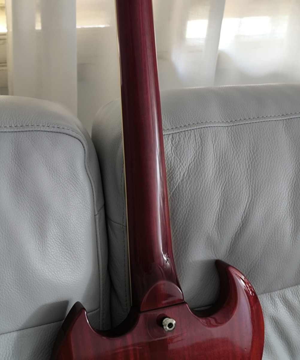 Vendo esta tokai japonesa SG124 con pastillas paf mojotone 59 clone. No conservo las originales, están son bastante mejores, andan sobre 240 euros el set. También le cambié los ganchos de la correa por unos Dunlop (los que trae de serie son muy pequeños), la tapa del alma por una campana tipo Gibson y el plástico del selector por uno crema (el original es naranja).