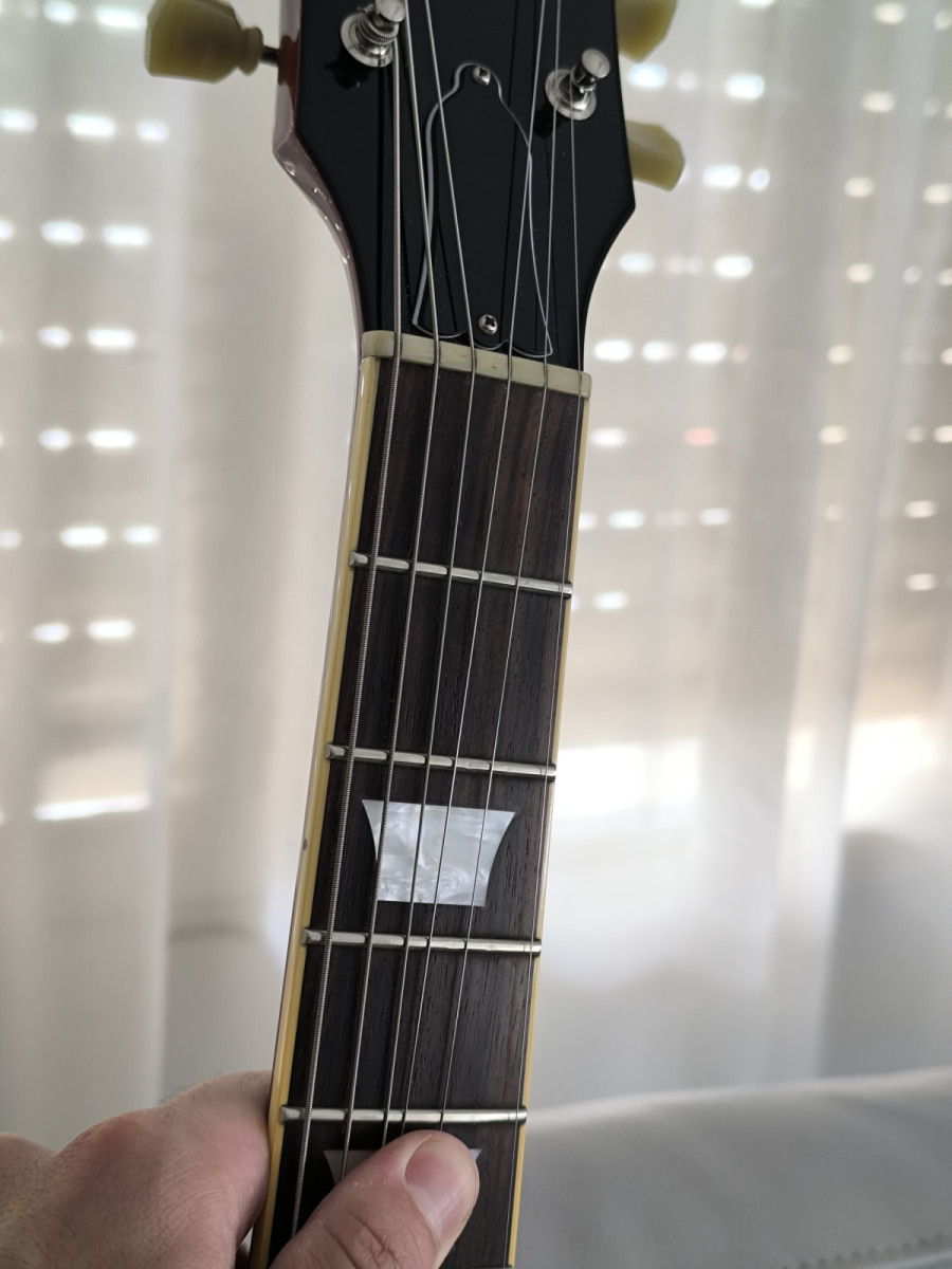 Muy buen estado, trastes con algo de desgaste, algunas rayaduras superficiales del uso y algún toque típico en la pala (ver fotos) Mástil ligeramente pulido por atrás para dejarlo más suave (ver foto). Ajustada y quintada con cuerdas del 0.10.