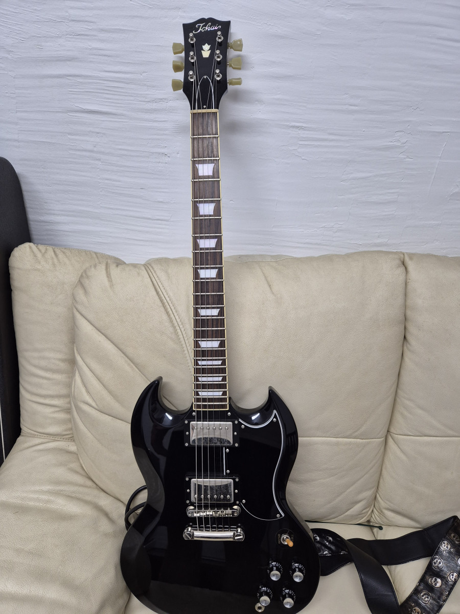 Guitarra eléctrica Tokai SG124 made in Japan de la serie Vintage, black beauty. Como nueva, por circunstancias de la vida sale poco a jugar... El estuche sí tiene algún toque pero nada grave. Está todo original, copio y pego specs: