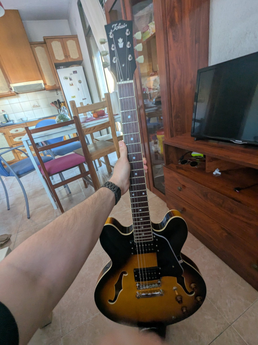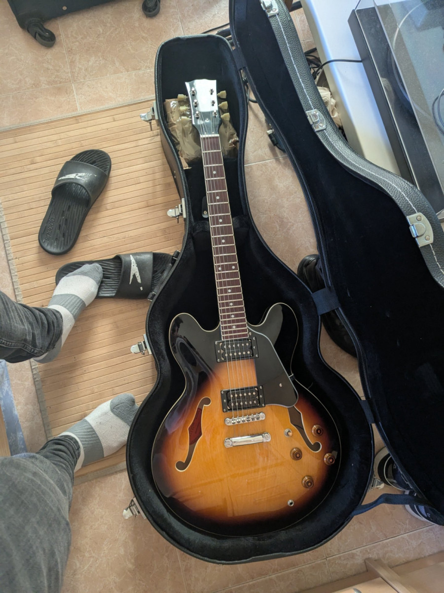 Guitarra eléctrica Tokai UES73 con acabado Sunburst. Modelo tipo ES335, acción super baja, super cómoda y agradecida de tocar. Vendo por exceso de material.