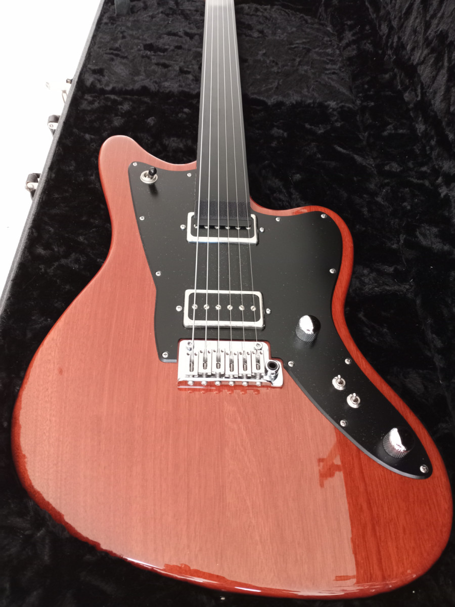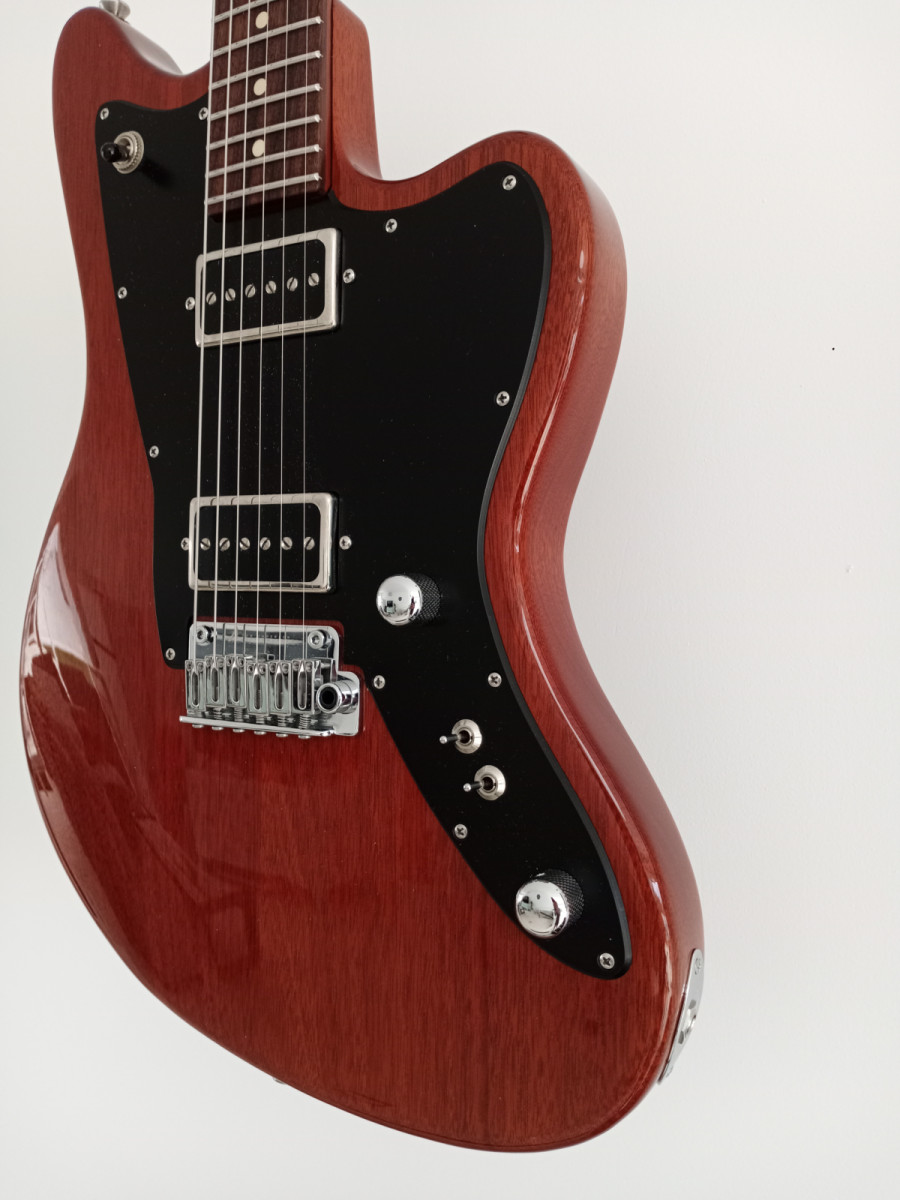 Cuerpo y mastil de caoba, escala corta/gibson,y con pastillas P90 en formato humbucker , asi es mas versatil.