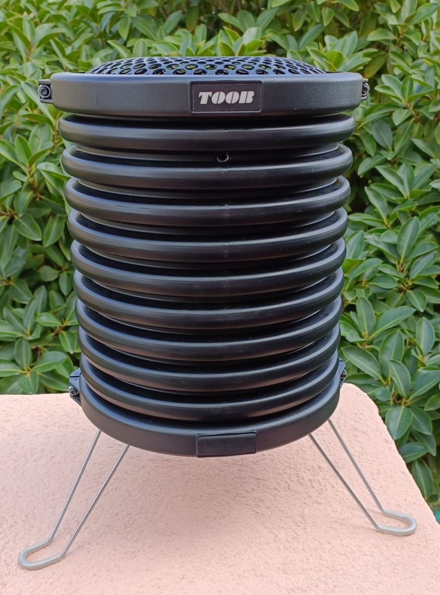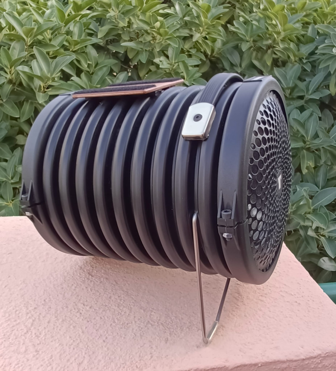 Rejilla de metal a medida • Elegante asa Cliff con tapas cromadas • Pata extraíble de alambre de acero inoxidable de 4 mm • Base con cierres de velcro para microamplificador • Dos conectores mono de 1/4″, cableado paralelo • Cable de conexión de 250 mm (10″) con conectores de cabeza plana • Conector ficticio para silenciar el conector inactivo • BG+: tres patas extraíbles de alambre de acero de 3 mm para posición vertical