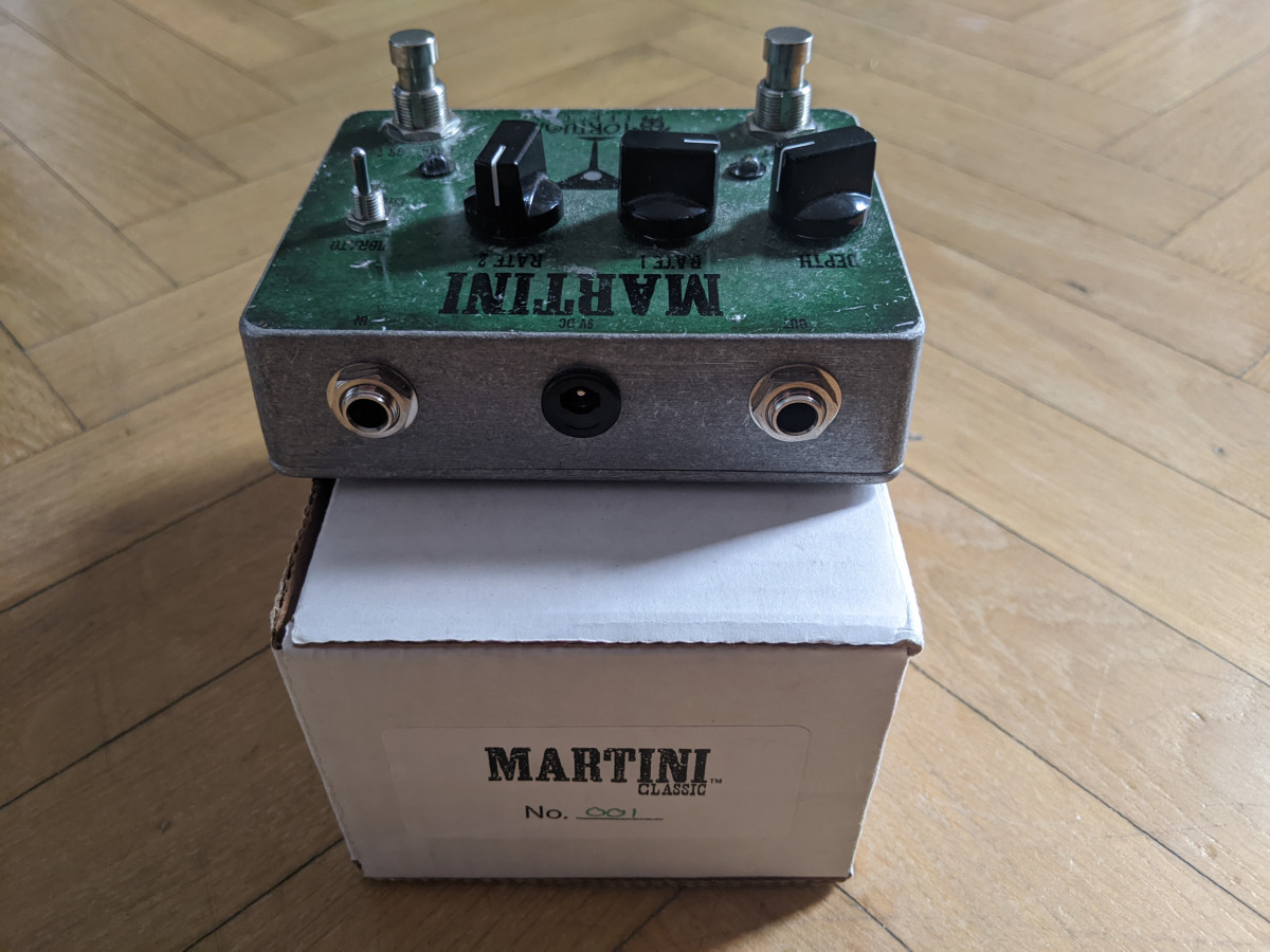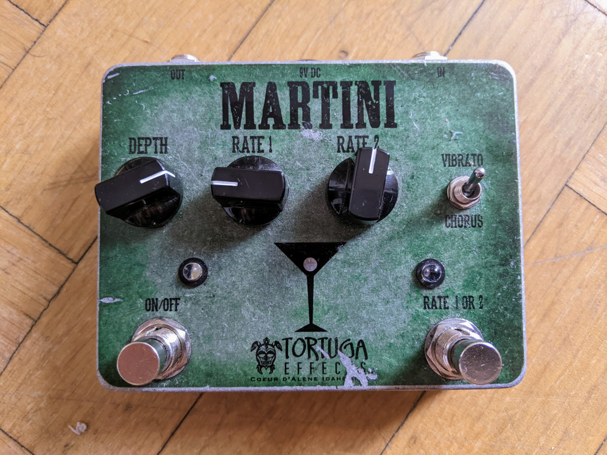 El Martini ™ es un chorus analógico que es el tono es realmente embriagador. Con dos controles de velocidad diferentes que se pueden cambiar sobre la marcha, el Martini ™ actúa como dos pedales completamente diferentes en uno. El segundo canal también tiene un interruptor para "sacudido" o "revuelto" para seleccionar chorus o vibrato para añadir aún más combinaciones tonales a la mezcla.