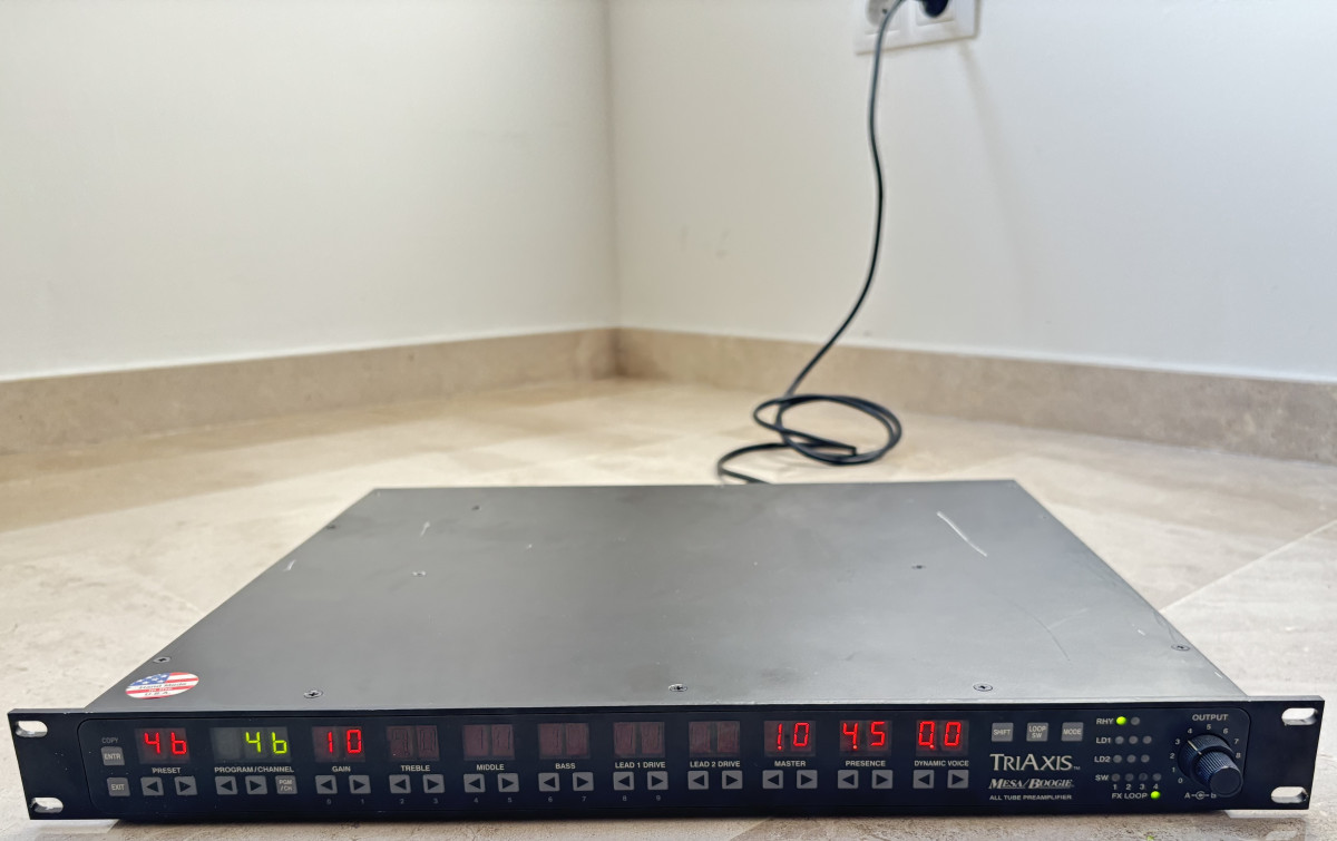 Vendo un Triaxis, el mítico preamplificador programable de Mesa Boogie. Lo compré nuevo en 2009 y lo utilicé hasta 2012 para unos pocos conciertos con mi grupo. Está como nuevo, excepto por marcas en el chasis. Lo vendo por 1000€.