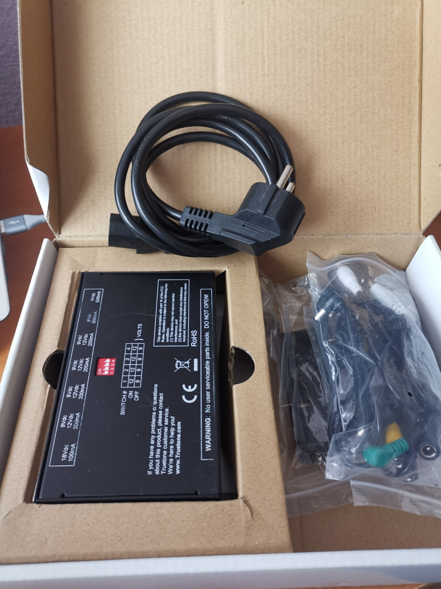 Conserva todos los cables, embalaje original, accesorios para montaje en pedaltrains e incluyo un cable de alimentación.
