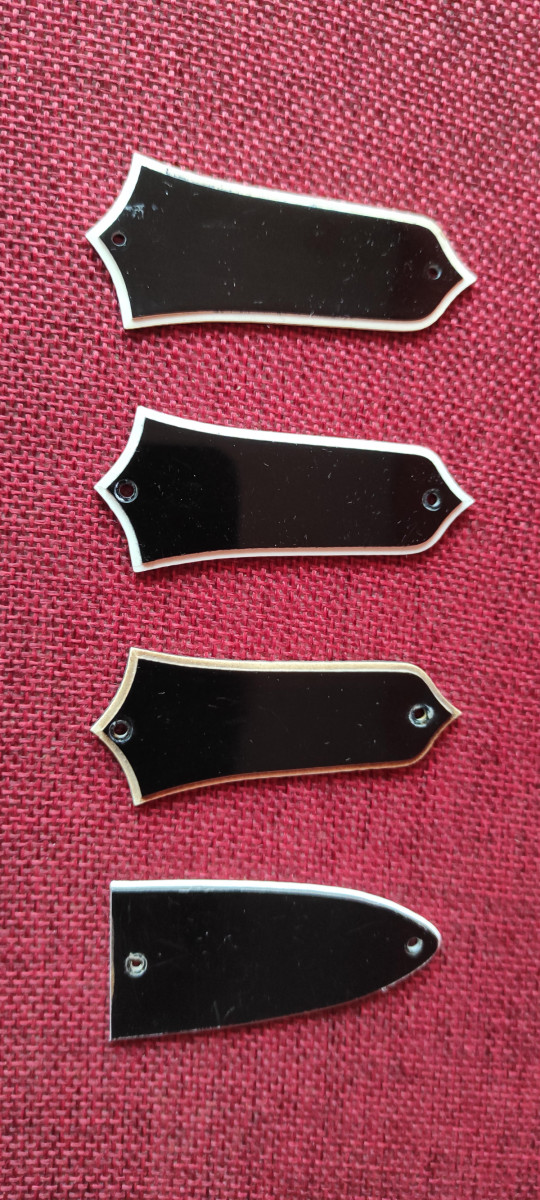 A la venta cuatro plásticos cubre alma (Truss rod covers) originales, tres vintage años 80/81 de Tokai y uno del 2003 procedente de una LS320, perfectos para restauraciones o bien para sustituir a los que traen de serie otras guitarras. Muy buen estado, con su pátina fruto de los años. Precio por unidad.