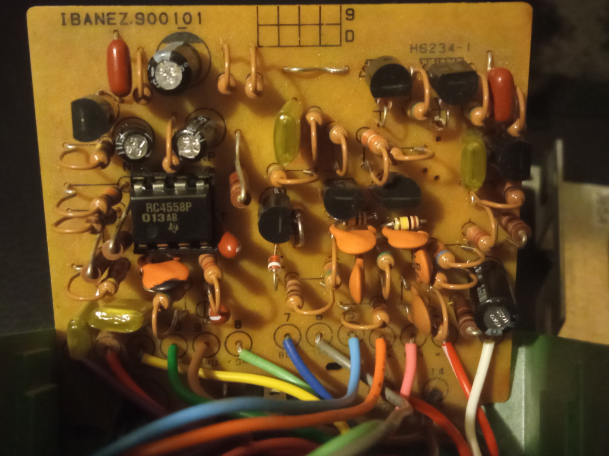 Pedal de guitarra Ibanez tube screamer made in japan con una mod hecha por guitartech california. El chip viene en zócalo, puedes probar con otros fácilmente, aunque el que tiene suena de lujo. En perfectas condiciones. Le puse un led verde de alta iluminación, conservo el led original. Hazme una oferta