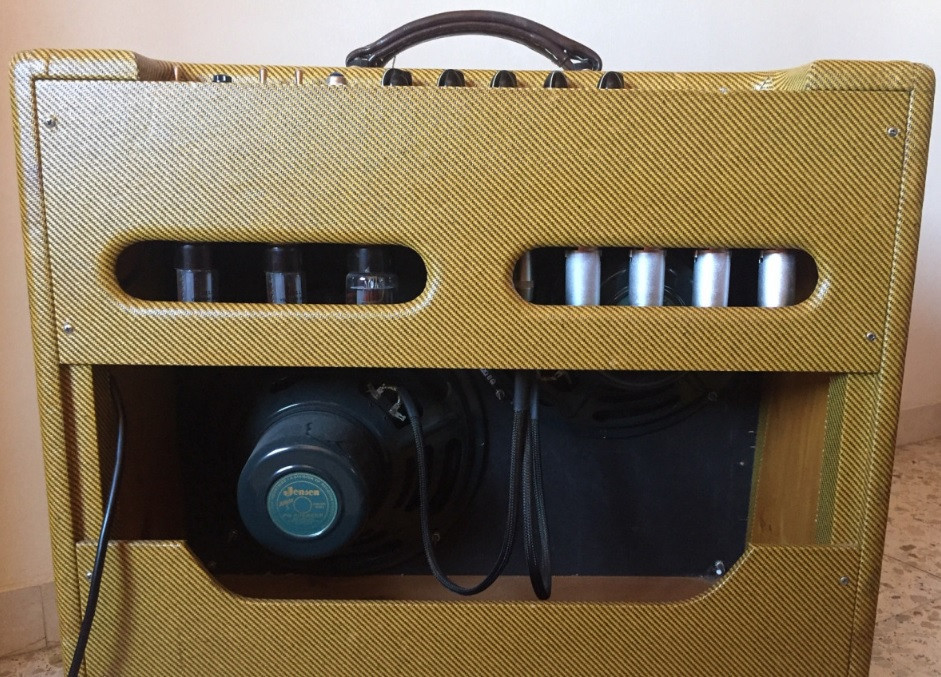 Se trata de una réplica del Fender TWIN AMP Tweed '57 - 40w 2x12 - montada por TUBE SOUND Barcelona en 2006 (https://www.tubesoundbcn.com)