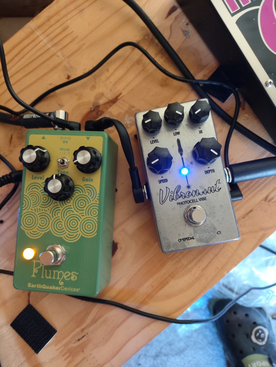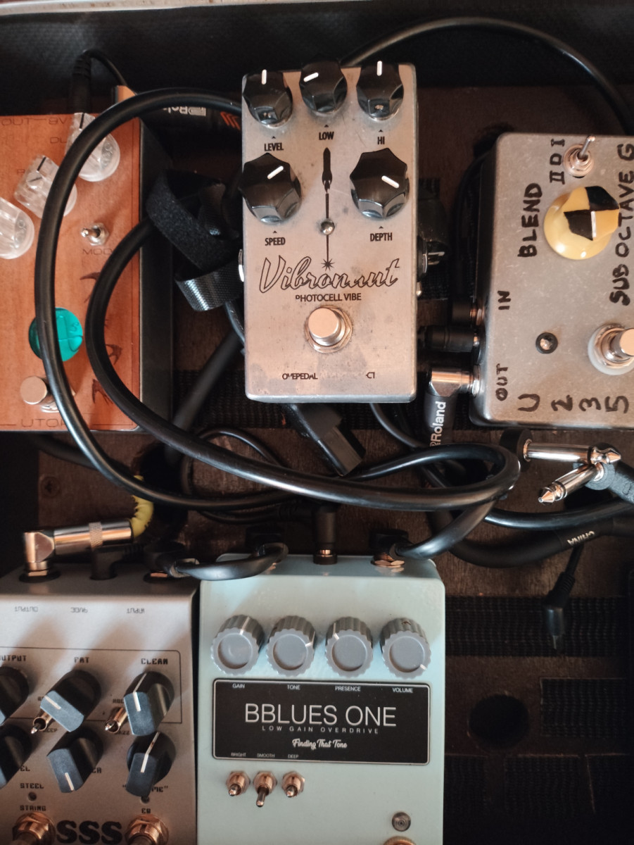 Sobran las palabras, unos de los mejores vibes que han pasado por mi pedalboard, me estoy volviendo espartano y reduciendo pedales que no utilizo. Vibronaut photocell vibe. Una auténtica pasada, con una pulsación muy orgánica y utilizable. El pedal funciona a la perfección sin ruido ni humo de ninguna clase, lo único que al ser la caja de aluminio cepillado coge pátina, y no se puede limpiar con productos químicos mucho porque se va la serigrafía.. Envío incluido en la península.