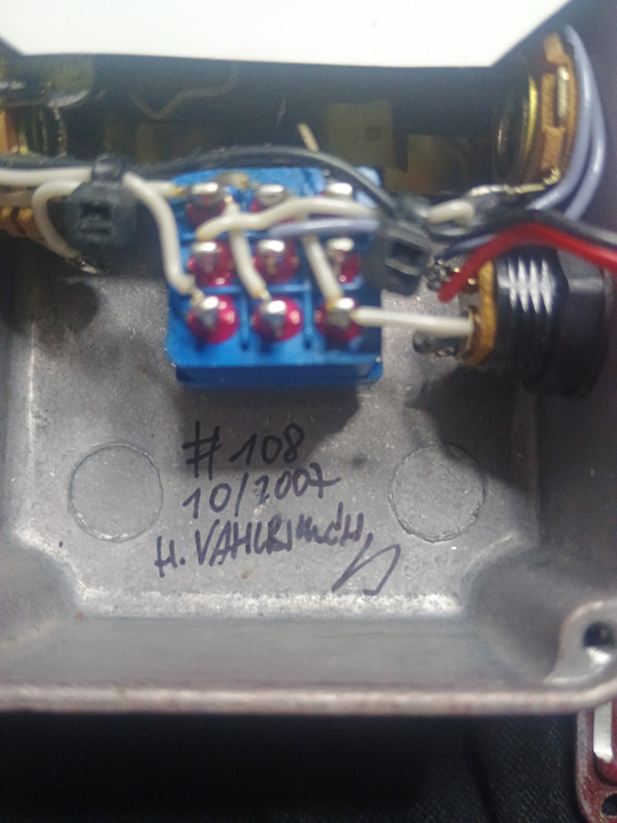 El estado estético es malo no por haber sufrido maltrato, la pintura de la caja se ha ido desprendiendo con los años, el pedal no tiene ningún golpe. Siempre ha estado encima del amplificador o en pedalera. Repito no tiene ningún golpe. Al ser de los primeros modelos supongo que la fijación de la pintura a la caja no quedó bien.