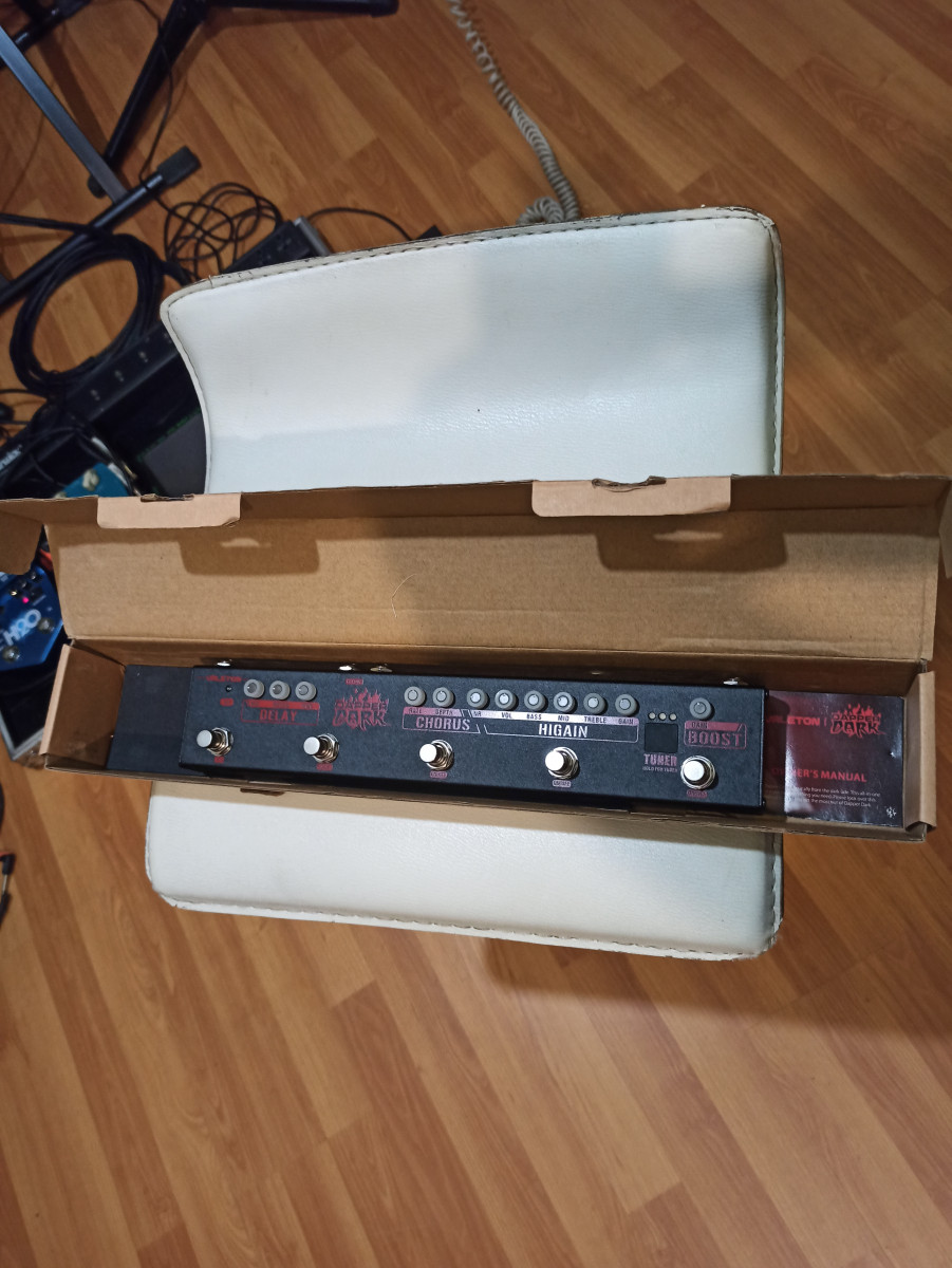 Boost, afinador, distorsión, chorus, delay, loop de efectos.