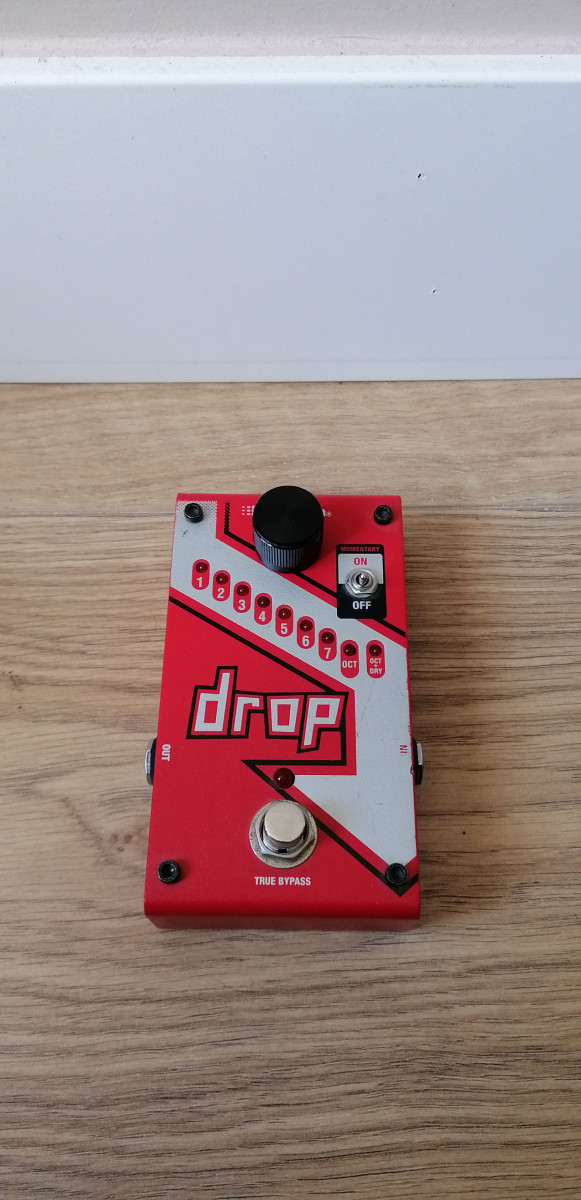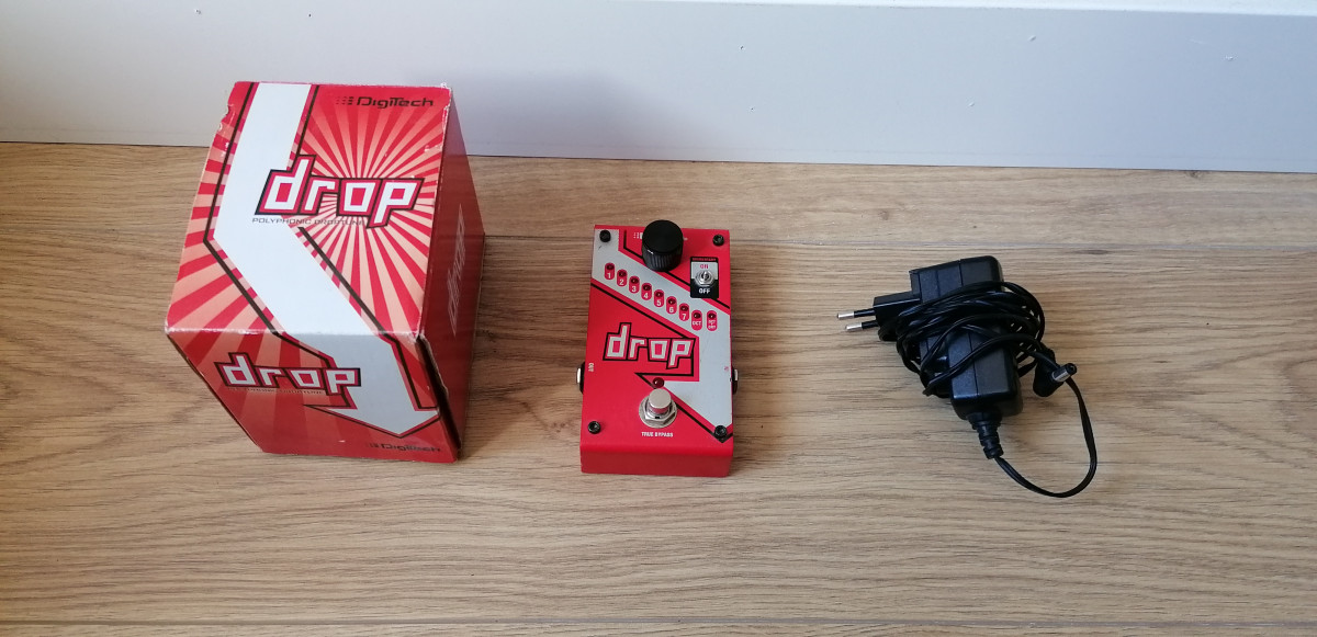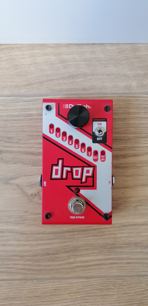 Se vende pedal Drop Digitech. Funciona perfectamente. Solo alguna pequeña marca que se puede apreciar perfectamente en las imágenes. Se vende por no usar. Se vende junto con su caja original y su adaptador para la corriente. Todas las características aquí: https://www.thomann.es/digitech_the_drop.htm