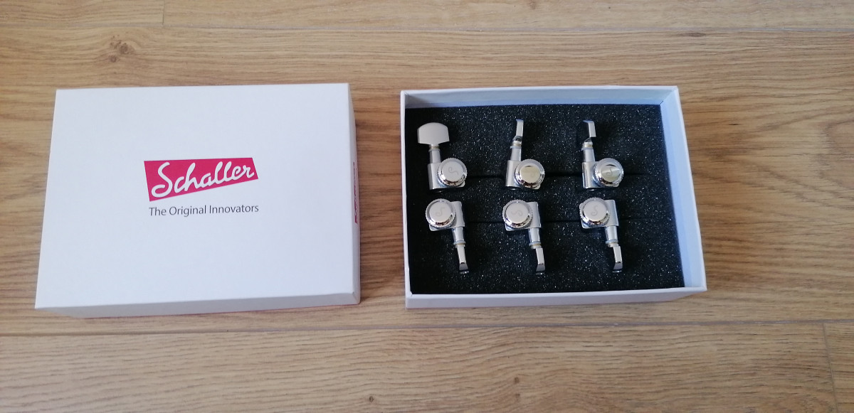 Se venden clavijeros Schaller F-Series Locking Tuners 6L CH. Están como nuevos los clavijeros. Nunca se han usado, ni siquiera sacarlos de la caja. Se venden por 75€, 50€ más baratos que en thomann.