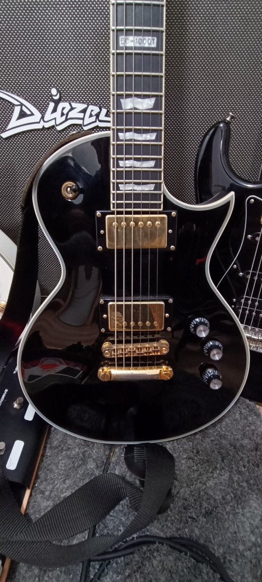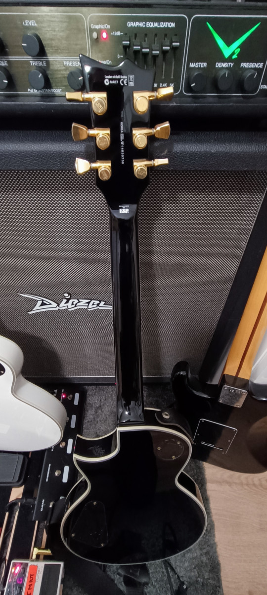 Cuerpo grueso, tipo les Paul custom.