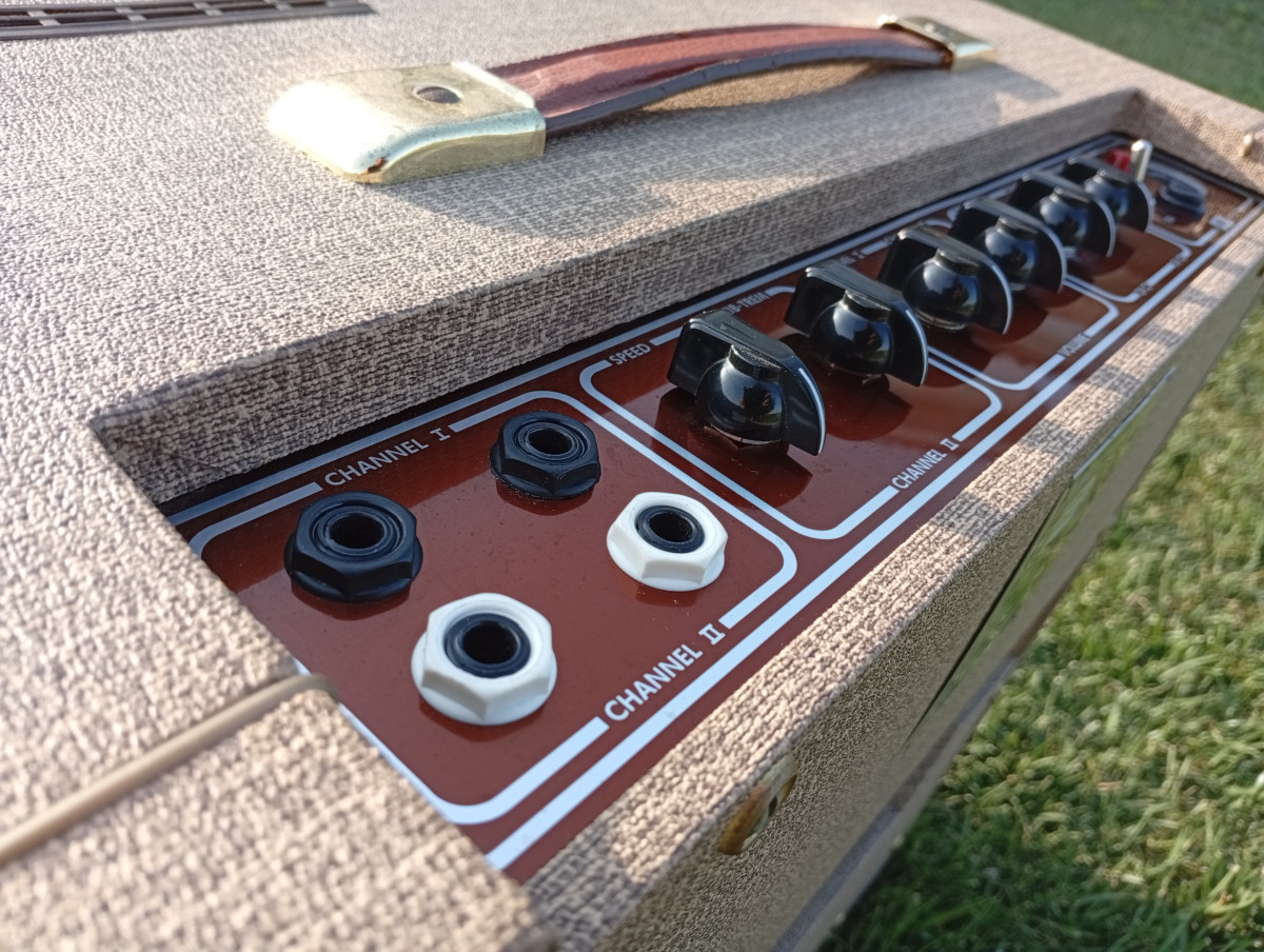 La construcción está hecha a capricho, y fiel al de 1961 y es posiblemente el ampli más fiable que tengo. Las válvulas tienen, además, mucha vida por delante. Con el amplificador se incluye una funda para protegerlo en los desplazamiento y su footswitch original para el canal de trémolo.