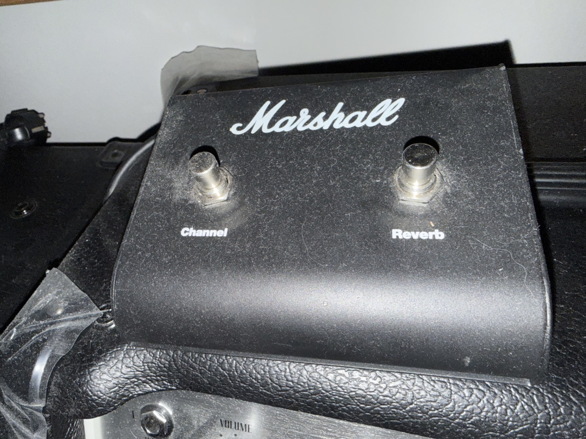 Buenas. Por falta de uso, vendo mi ampli Maershall Slash Signature. Como podréis ver en las fotos, tiene hasta los plásticos protectores. Imagino que necesitará una revisión, ya que se usó el día de su compra, dos veces más pero el resto del tiempo ha estado parado. Está totalmente descatalogado. Con su pedal de cambio. Disculpad las fotos, pero esta en un cuarto sin luz natural.