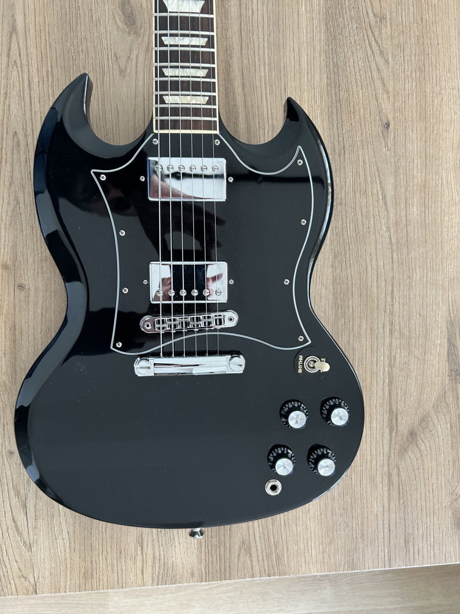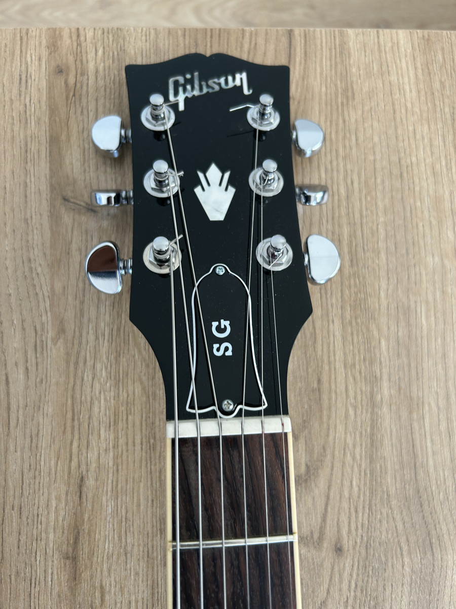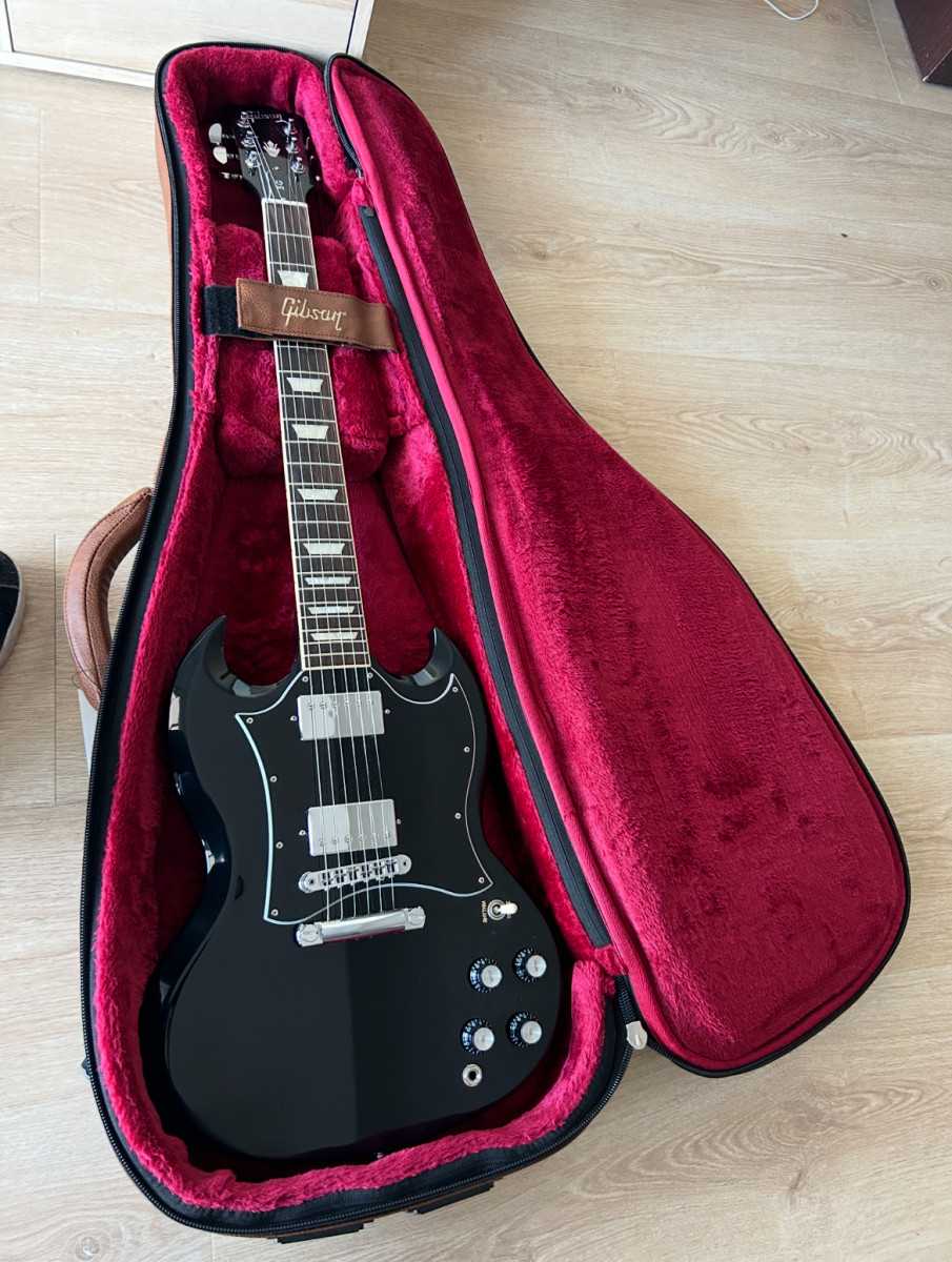 Gibson SG del año 2021 en perfecto estado con su funda y accesorios originales.