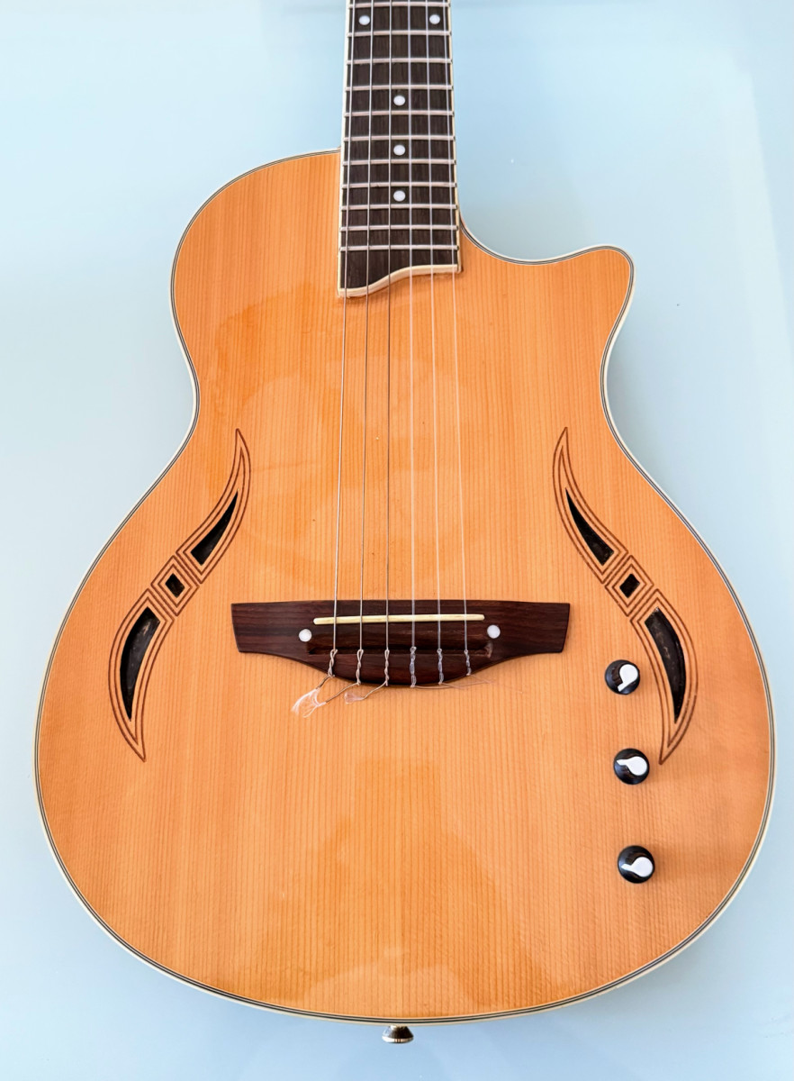 Pues una guitarra curiosa y muy buena en cuanto a calidad /precio .