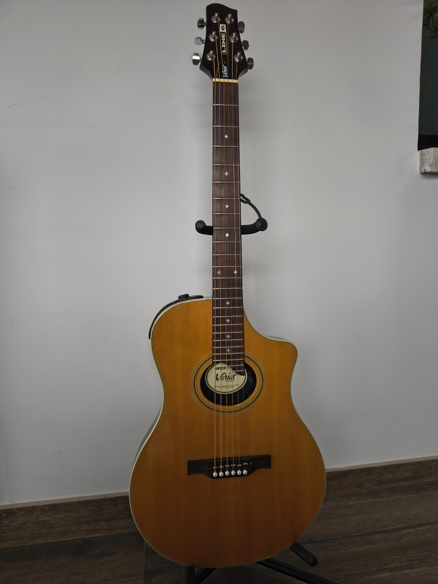 Se trata de la versión acústica (actualmente descatalogada) de la Variax de Line6 en su gama más alta, la 700. Es una guitarra de modelado con 16 sonidos de guitarras acústicas (como Martin, Gibson, guitarras de 12 cuerdas o clásica) y otros instrumentos acústicos (como banjo, sitar, etc…), que además cuenta con un sistema para cambiar automáticamente a cualquier afinación, desde afinaciones del tipo Open G, Open D,… a “pitch shifting” o incluso poner la 6ª y la 5ª cuerda en una octava menos para tener bajo + guitarra. La guitarra tiene tres controles a parte del selector que son volumen, compresor y posición del micro.
