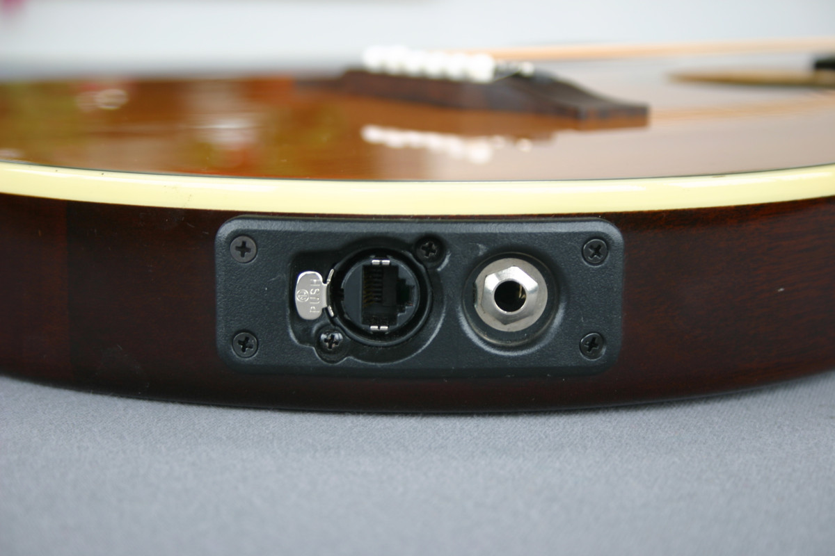 • Caja de conexión directa incluida que proporciona alimentación, además de salidas de guitarra estándar de 1/4" y XLR balanceadas