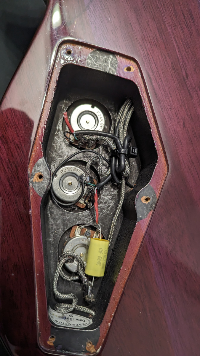 Hola! pongo a la venta esta guitarra, en muy buen estado, algunas marcas de uso superficiales como alguna rallita producida por el roce y el uso, o algun puntito, que solo se ve si te fijas mucho, se le ha cambiado la cejuela por una de Tusq y ajustado la altura de las cuerdas para tener la accion mas baja posible, monta cuerdas Ernie Ball recien puestas calibre 11 - 48, toda la electronica menos las pastillas se ha cambiado por componentes mejorados, como el selector switchcraft, cableado de malla, potenciometros de buena calidad, condensador Tad Mustard de 47nf, la guitarra funciona perfecta, la pongo a la venta porque me he encaprichado de otra, si quereis mas fotos las puedo pasar a quien esté interesado,