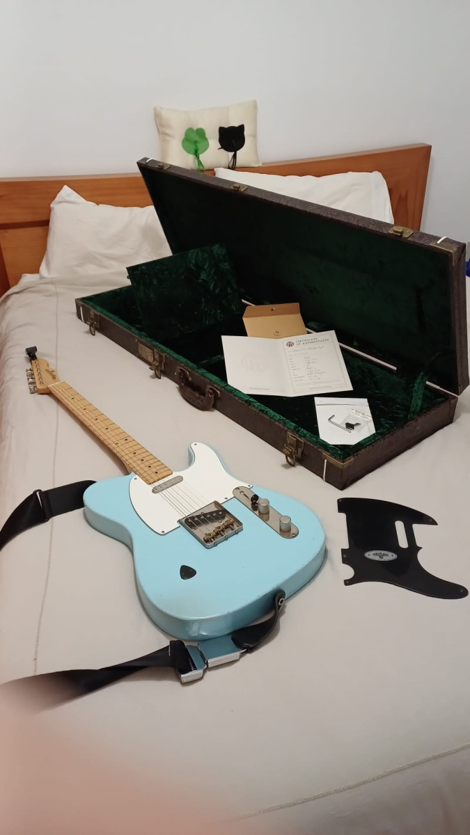Vendo Mayback, tipo Telecaster, hecha a mano. Su sonido es una salvajada, las pastillas que lleva son brutales.. La vendo a mi pesar por un problema de salud. 1200 eur. La vendo en su estuche original, con un golpeador extra que podéis ver en las fotos. Correa y afinador no incluidos. Precio no negociable. Contacto : 654 85 53 24.