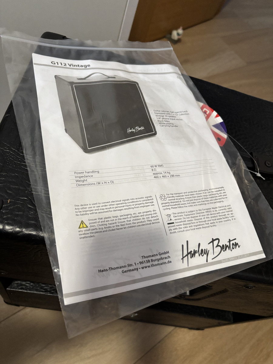 (RESERVADA) Hola saco esta pantalla harley Benton G112 vintage con cono celestion vintage 30 en perfecto estado solo en mano en madrid y alrededores no envío y no cambios un saludo