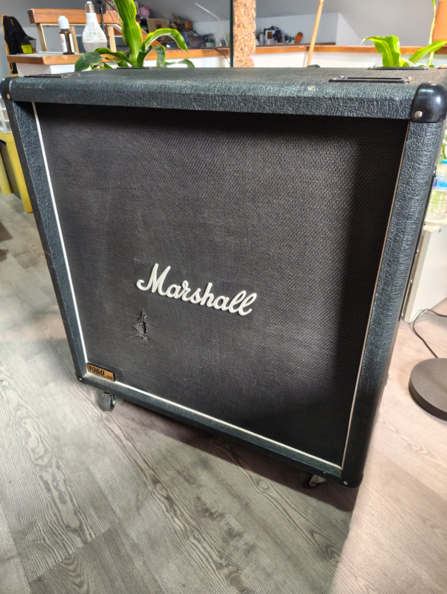 Es una Marshall 1960b, tiene los desperfectos estéticos que se ven en las fotos.